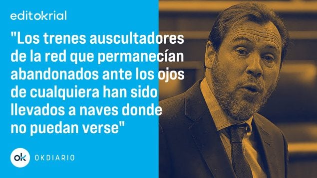 OKDIARIO ofrece hoy un documento periodístico que habla bien a las claras de la desidia del Gobierno. Ante la polémica generada por estar a la intemperie, olvidados a su suerte, se ha procedido a su traslado a un lugar donde no puedan ser vistos. Una manera de esconder las pruebas del delito. Qué terrible paradoja: el ministerio de Transportes oculta a los trenes que no auscultan. Vergonzoso.