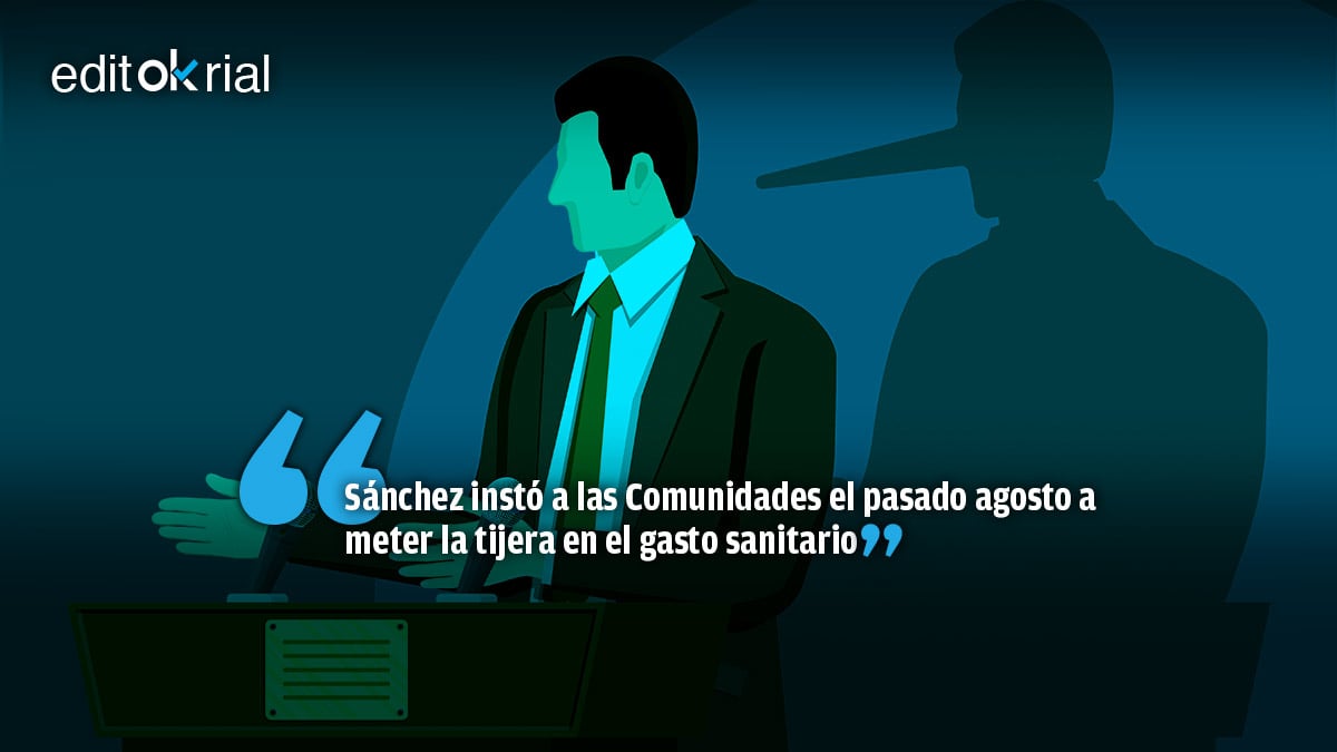 Se da la circunstancia de que en el acuerdo de Gobierno entre PSOE y Podemos se comprometían a elevar el gasto en sanidad hasta el 7,5 por ciento del PIB por aquello de la «eficiencia y la sostenibilidad» del sistema público de salud, cuando apenas unos meses antes el Ejecutivo de Pedro Sánchez instaba al tijeretazo. No cabe mayor hipocresía, ni más doble moral que la que exhibe este Gobierno cínico y mendaz.