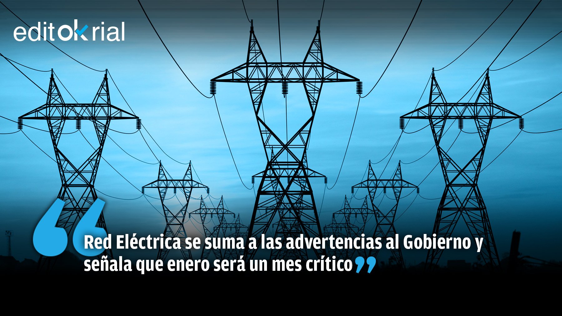 Primero fueron las eléctricas quienes advirtieron a Pedro Sánchez de que un momento de poco viento, menos sol y fuerte frío puede provocar un apagón eléctrico por la incapacidad de sumar la generación de electricidad con gas natural en plena punta de demanda. Las previsiones meteorológicas de las eléctricas marcan un momento similar al descrito a finales de enero. Ahora, Red Eléctrica Española (REE) ha informado ya extraoficialmente al Gobierno de sus previsiones para los próximos meses. Y uno de los avisos va en idéntico sentido: enero puede ser un mes especialmente peligroso en cuanto a riesgo de corte eléctrico. ¿Y Sánchez? Nada. Cruzando los dedos. El Gobierno insiste en que no habrá cortes de suministro y que todos los mensajes en sentido contrario son propios de quienes disfrutan alentando el apocalipsis. Y es que, por mucho que diga el Gobierno, enero registrará una fuerte demanda de electricidad por parte de los consumidores españoles, justo en un momento en que se topará con una caída de la electricidad generada por las principales energías conocidas como verdes. Todo ello, mientras las reservas hidráulicas no se encuentran en su mejor momento.