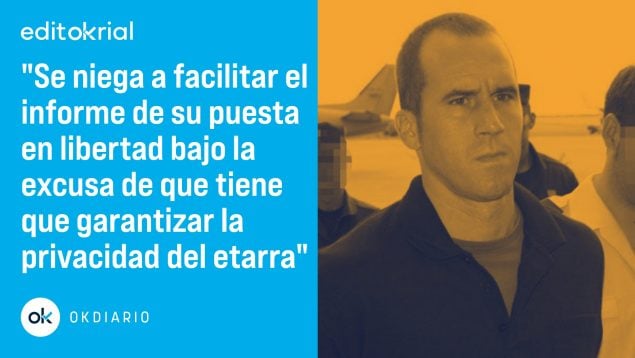 Ahora, el Ejecutivo del PNV y PSOE se escuda en el derecho a la protección de datos del etarra para no enseñar el informe, una justificación indecente porque los datos privados del terrorista nos importan una higa y lo que se está demandando es conocer el informe —las razones— por las que ha sido puesto en libertad.