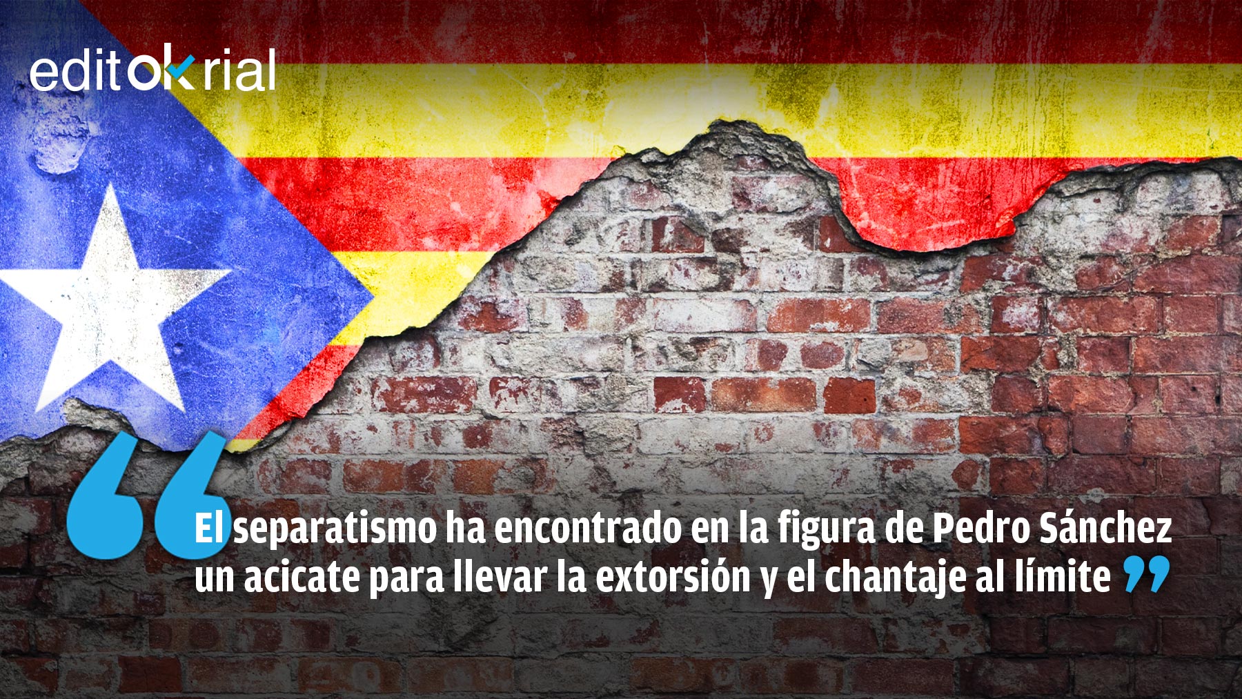 El separatismo se realimenta de su falso victimismo. Vive de su enfrentamiento continuo contra el Estado. Ha encontrado en la figura de Pedro Sánchez un acicate para llevar la extorsión y el chantaje al límite. Es cierto que está dividido, pero su creciente debilidad y pérdida de poder de convocatoria la compensan retratando la debilidad de un presidente que se ha rendido al golpismo. En el fondo, y eso es lo más triste, ambos se necesitan mutuamente. Y el daño que están causando a la sociedad española puede ser irreversible. La Diada ha sido un fracaso, pero la debilidad de Sánchez ante los sediciosos otorga a estos un balón de oxígeno. Y mientras, los españoles asisten como convidados de piedra a esa funesta retroalimentación de intereses entre una pandilla de golpistas y un Gobierno que ha claudicado y entregado la dignidad de España y de los españoles por un puñado de votos.