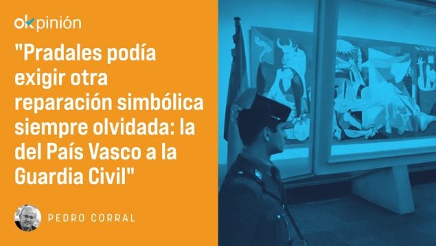 Pradales podía exigir otra reparación simbólica siempre olvidada, siempre postergada: la del País Vasco a la Guardia Civil. Una reparación a aquellos hombres y mujeres que, con el apoyo callado, a corazón abierto e insomne de sus familias, se enfrentaron a los planes criminales de una banda de fanáticos sedientos de sangre que sembraron la geografía vasca y española de escenarios de terror, a sangre y fuego, como en un bombardeo de racimo.
