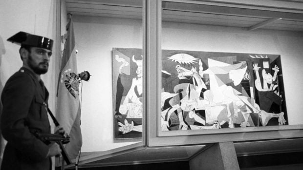 Si Picasso puso como condición que en España hubiera libertad, los custodios de su Guernica eran también los custodios de aquella libertad recobrada, y así se difundió al mundo entero con las imágenes de la Benemérita protegiendo su lienzo en su primera exhibición en tierra española cuarenta y cuatro años después de su creación.