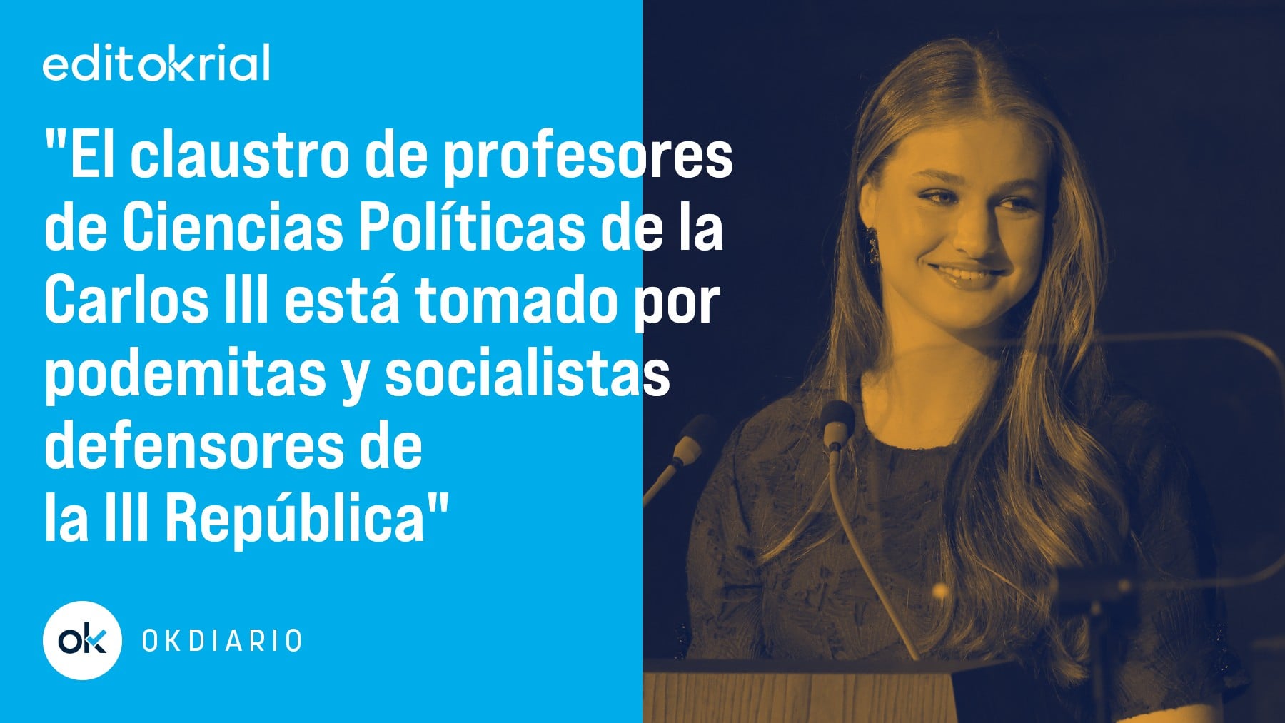 Y es que no resulta exagerado decir que entre el docto elenco de profesores hay una mayoría de recalcitrantes defensores de la República, incluyendo a algunos que no ocultan su objetivo de derogar la monarquía parlamentaria. La Carlos III afirma que el grado que cursará doña Leonor tiene como objetivo «formar especialistas y profesionales preparados para comprender y analizar la política en toda su complejidad, con rigor y profundidad», pero más allá de lo obvio, no son pocos los profesores que han dejado claro que la Corona es una institución anacrónica y antidemocrática que consagra privilegios incompatibles con los valores de igualdad. Un repaso a la lista de docentes nos sitúa delante de perfiles como el de Jediael Álvarez de Dompablo, actualmente asesor en el Ministerio de Igualdad y antiguo dirigente de las Juventudes Socialistas de Madrid. Como tal, en 2017, presentó una enmienda en el 39 Congreso del PSOE que pedía convocar un referéndum para instaurar la Tercera República. Y eso que Álvarez de Dompablo, comparado con otros docentes como Rubén Juste, es una hermanita de la caridad: Juste fue asesor de Podemos en el Congreso e ideólogo de las campañas de acoso más polémicas del partido, el Tramabús, que recorrió las calles de Madrid atacando y poniendo en la diana, entre otros, a políticos como González o Aznar, empresarios o al director de OKDIARIO, Eduardo Inda.