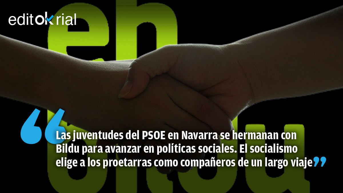 El PSOE pretende hacernos creer que el acuerdo presupuestario del Gobierno socialcomunista con Bildu es algo coyuntural, pero los hechos desmontan esos argumentos y revelan que estamos ante un pacto de amplio espectro y voluntad de perdurar. Bildu ya cuenta con el apoyo de los socialistas en Navarra para impulsar los presupuestos locales, pero, como informa OKDIARIO, las juventudes navarras de ambas formaciones han sellado un gran acuerdo de entendimiento y hermanamiento con el pretexto del coronavirus. El pacto incorporó el mensaje de que, a partir de ahí, debía construirse un entendimiento duradero a medio y largo plazo entre ambas formaciones. Hermanos de sangre. Tremendo.