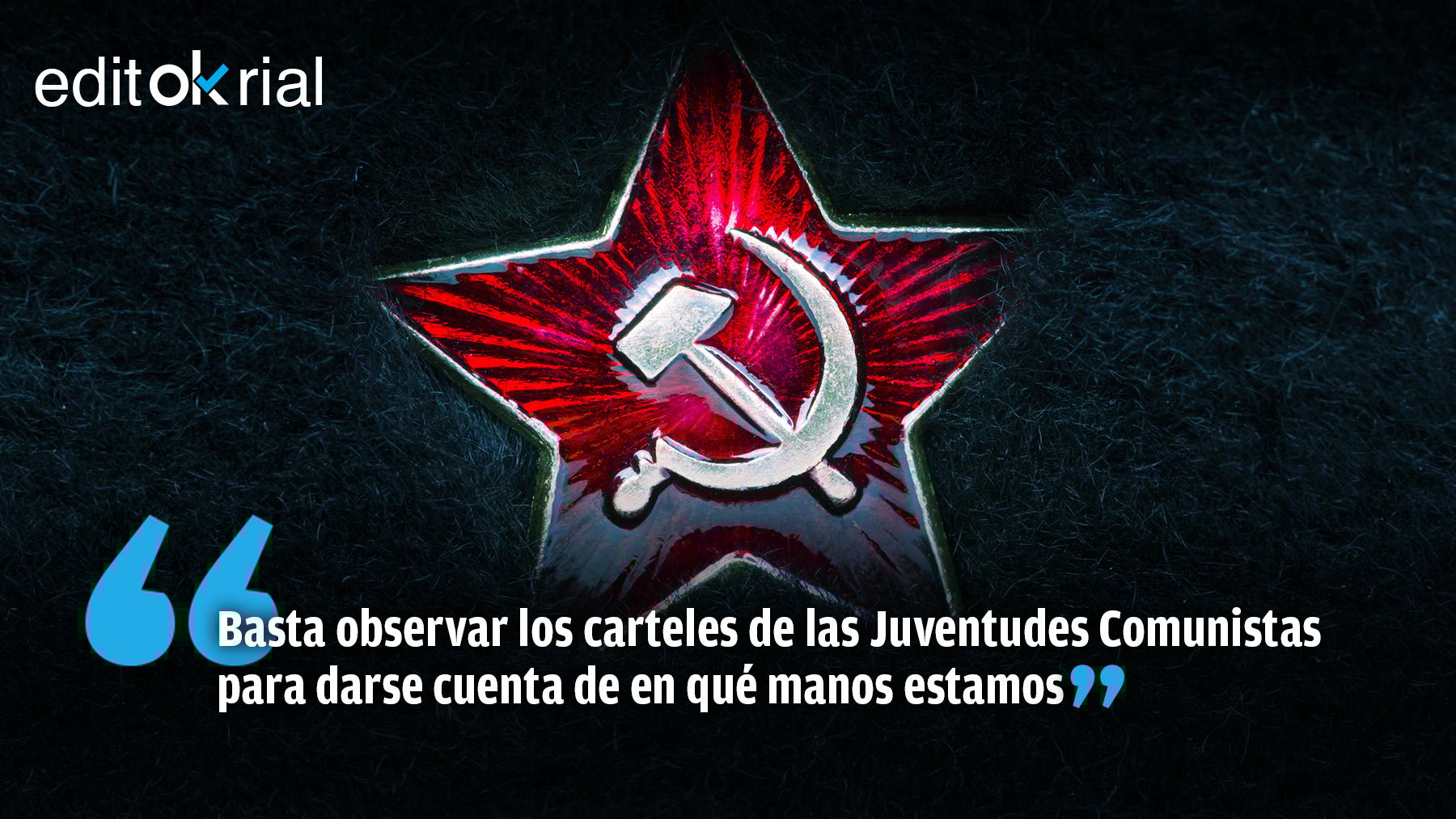 No nos engañemos: el problema de los comunistas en el Gobierno de España es que la invasión rusa de Ucrania les ha roto los esquemas mentales y sus corsés ideológicos han quedado en evidencia. Y es que sus señas de identidad pivotan en torno a la vieja idea de que Occidente y la OTAN eran los culpables de todos los males del mundo. Y como quien está aplastando a sangre y fuego es Vladimir Putin, uno de los suyos, tienen que hacer contorsionismo. Los carteles de las Juventudes de Izquierda Unida les retratan: la culpa de lo que están pasando no es de Putin, sino de la UE y los Estados Unidos. No tendría mayor importancia de no ser por el pequeño detalle de que esta gente -que siempre ha hecho lo mismo- forma parte del Gobierno de España, una democracia hasta hace nada de marcada vocación europeísta y atlántica. Hasta que llegaron ellos. Y ahí está la madre del cordero. En el Ejecutivo español hay personas que sienten fascinación por ese régimen soviético que ahora pretende relanzar el presidente ruso, un admirador confeso del genocida Stalin.