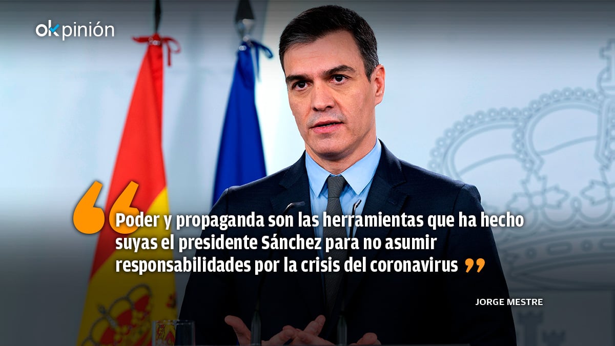 Poder y propaganda son las herramientas que ha hecho suyas el presidente Sánchez para no asumir responsabilidades por la crisis del coronavirus. El “poder” trata de afianzarlo con los mal llamados nuevos “Pactos de la Moncloa”. Los de 1977 ni se produjeron bajo la presión social de 25.000 muertos, ni con un gobierno de coalición con la extrema derecha, tampoco existía Constitución que fijara las reglas de juego, y a los dos años se celebraron elecciones. Ahora, 43 años después, hay un partido comunista en el Ejecutivo, hay un abuso permanente de poder por parte de socialistas y comunistas, y el Presidente no se plantea una cita electoral. En cuanto a la propaganda, la censura previa a los periodistas en las ruedas de prensa, la manipulación de TVE, el uso partidista del CIS, la compra de voluntades en las televisiones privadas, los bulos difundidos por el Gobierno y los ataques constantes al artículo 20 de la Constitución que protege el derecho a la información han hecho que los españoles no se fíen ni de Sánchez ni de Iglesias. Prueba de ello son los índices de audiencia de las comparecencias de Sánchez en las televisiones que han caído un 60% en un mes y la encuesta de Oxford y Reuters que pone a los españoles como los más desconfiados del mundo con sus gobernantes en la crisis del coronavirus.