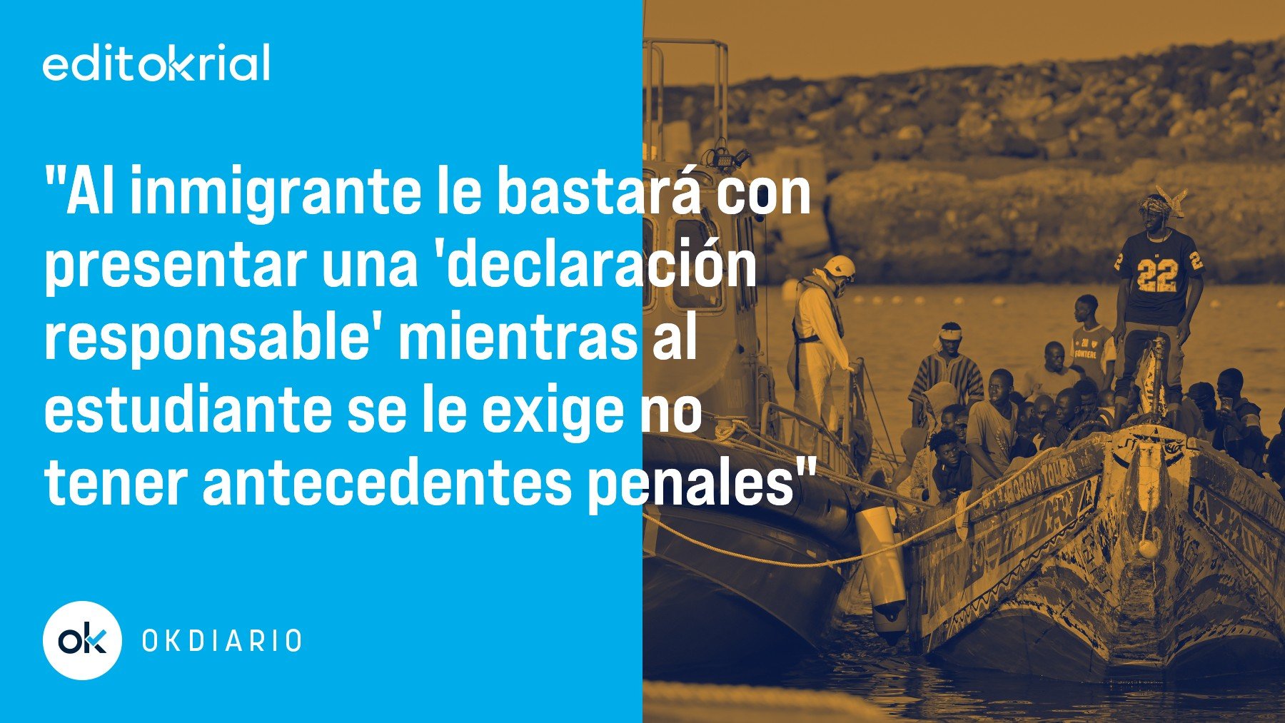 Mientras el Ministerio de Economía exige a los becarios que aspiran a las ayudas en «programas de talento» que carezcan de antecedentes penales y no estar incursos en causas penales, el Gobierno de Pedro Sánchez permitirá una mera «declaración responsable» a los inmigrantes que se acojan a la regularización masiva, con la salvedad de que esta declaración responsable no tiene que ir acompañada de ninguna documentación que sirva como prueba. Y en el caso de que sus países de origen no certifiquen la existencia de ausencia de antecedentes penales, el Gobierno entenderá que el vacío es motivo suficiente de legalización.