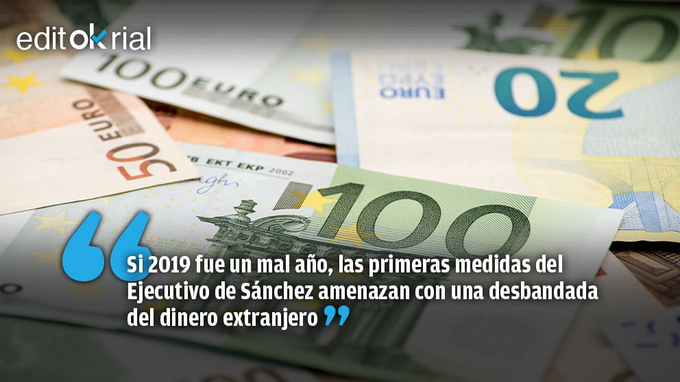 Con este panorama, el dinero extranjero es lógico que huya de una nación donde las primeras medidas del Gobierno socialcomunista invitan a la retirada. Si 2019 fue malo, 2020 puede que sea la puntilla.
