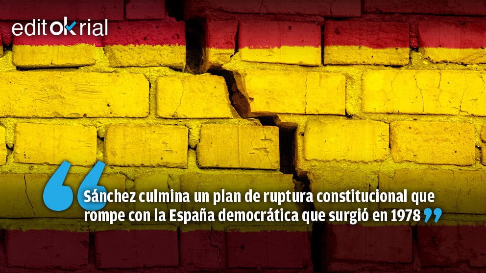 Lo que ha hecho Sánchez ha sido bendecir a los enemigos de España y cargar contra quienes alertan del riesgo de fractura del marco constitucional. El golpe contra el Estado promovido por el presidente del Gobierno responde a la voluntad firme del secretario general del PSOE de abandonar el bloque constitucionalista para liderar el ominoso frente de los contrarios a la Monarquía constitucional.