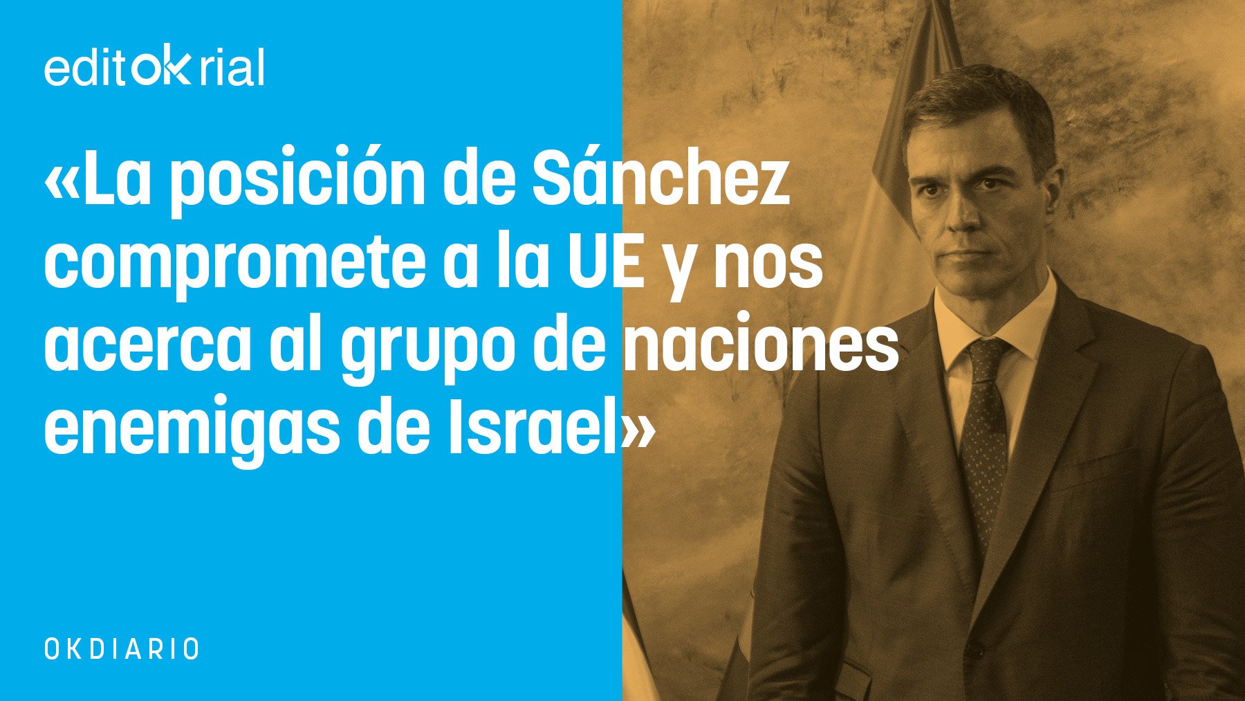 Sánchez, de forma absolutamente caprichosa, ha comprometido a la UE, al asegurar que si la Unión no reconocía al Estado palestino, España lo haría por su cuenta, una insensatez que coloca en una posición desairada a la Unión Europea, donde naciones como Francia o Alemania han prohibido, incluso, las manifestaciones de apoyo al pueblo palestino por la exhibición de símbolos contrarios al pueblo judío.
