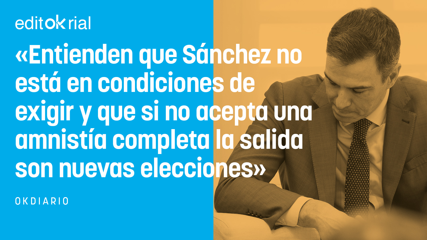 La lectura que Junts ha hecho de las elecciones gallegas -y eso que el PSOE insiste en que los resultados no son extrapolables- tiene una clave indefectiblemente nacional. Tanto que en el cuartel general de Puigdemont en Waterloo tienen claro que es momento de aprovechar la debilidad extrema de Pedro Sánchez para hacerse fuertes en su exigencia de que la Ley de Amnistía contemple todos los supuestos -o sea, que sea de amplio espectro-. Tienen claro que el batacazo en Galicia coloca al PSOE ante la tesitura de ceder o convocar elecciones, pero ni por asomo ellos van a rebajar el listón de sus exigencias. Y es que están convencidos de que el problema lo tiene Pedro Sánchez y ellos no van a ser, en ningún caso, la tabla de salvación del presidente. El último órdago que le lanzó el PSOE a Junts es que si no colaboraban la única salida sería la de volver a las urnas, pero ese escenario no les inquieta y le han devuelto la pelota. O Sánchez pasa por el aro o lo de las elecciones ya no será una amenaza socialista, sino una consecuencia inevitable.