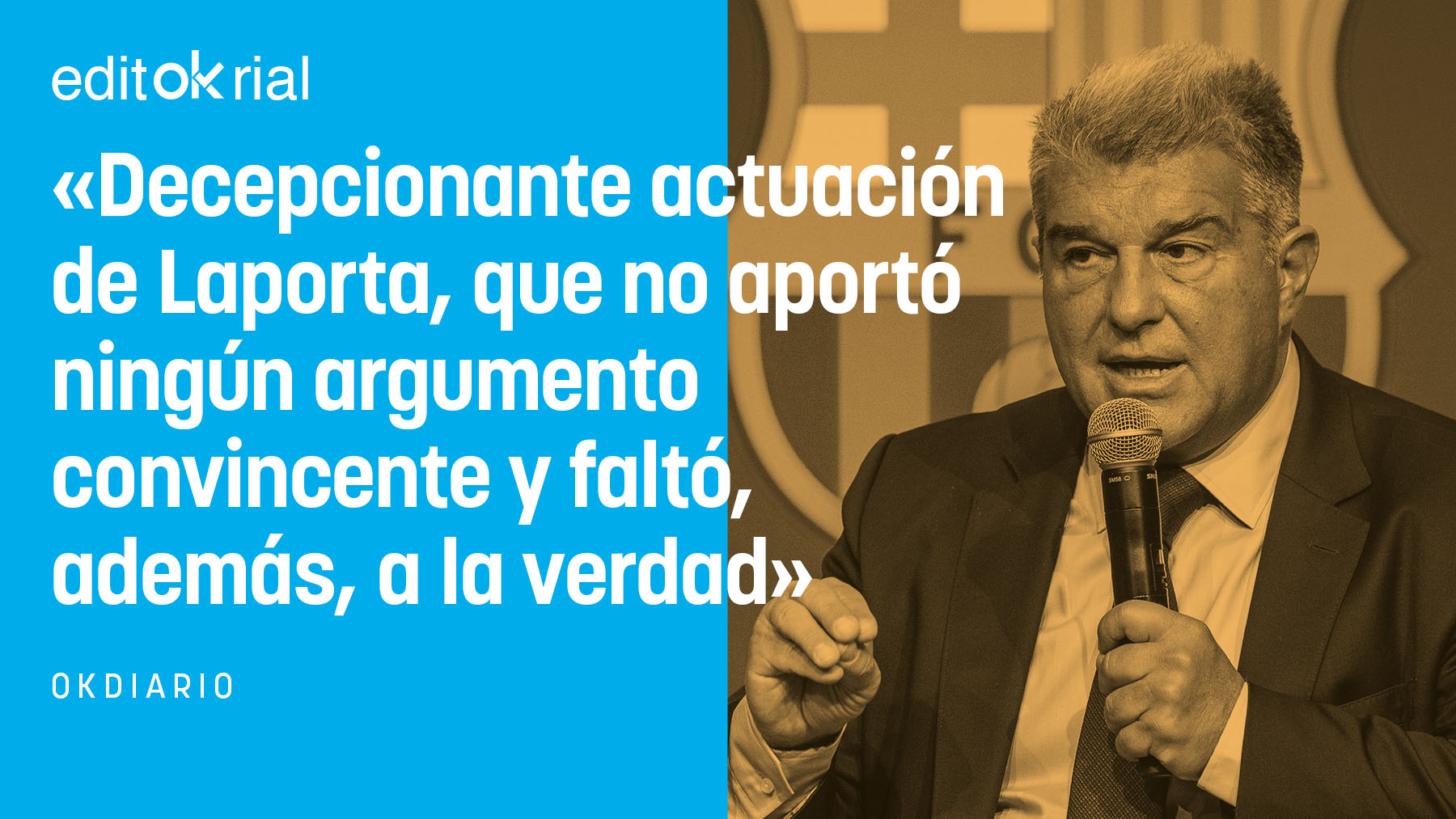 Para llevar dos meses preparándola, la comparecencia de Joan Laporta, presidente del FC Barcelona, fue de lo más decepcionante: una sucesión de lugares comunes, inflados de victimismo y ataques al Real Madrid para evitar responder a la pregunta clave: ¿Por qué el Barça contrató los servicios del número 2 del Comité Técnico de Árbitros, cuando las labores de asesoramiento las podía haber llevado a cabo cualquier ex colegiado con experiencia y sin vinculación con el estamento arbitral? De eso, Laporta no dijo ni palabra. Pero hay algo en lo que Laporta faltó clamorosamente a la verdad. Afirmó que Hacienda envió un escrito a la Fiscalía en el que «se manifiesta claramente que no ha podido demostrar que esos pagos al señor Negreira pudiesen tener algún tipo de influencia en la elección de los árbitros o en algún resultado deportivo».
