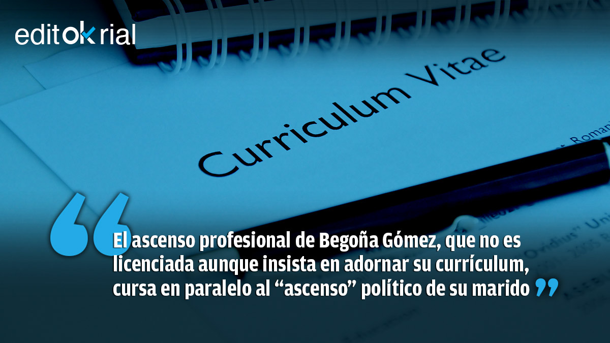 No se trata de poner en duda la capacidad profesional de Begoña Gómez, sino de desenmascarar los falsos títulos de una mujer que ha aprovechado que su marido es el presidente del Gobierno para ocupar puestos en la universidad que estaban reservados a personas con un expediente académico superior al suyo. Que falsee su currículum -dime de qué presumes y te diré de qué careces- retrata a Begoña Gómez, cuyo meteórico ascenso profesional obedece, claramente, al hecho de que es la mujer de Pedro Sánchez. Un ‘título’ que está explotando en una portentosa exhibición de nepotismo.