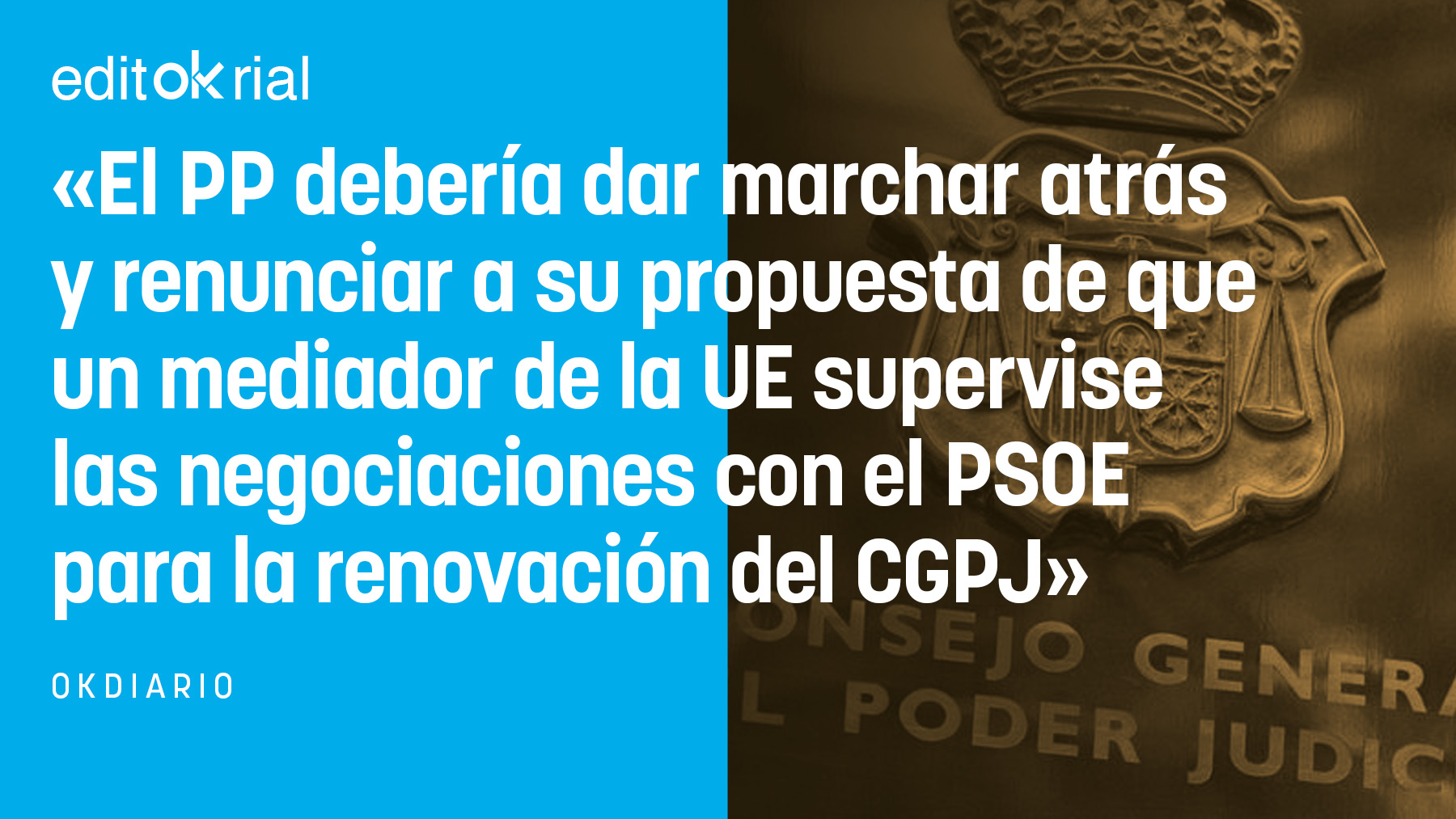 La propuesta del PP de que la UE supervisara las negociaciones con el PSOE para la renovación del Consejo General del Poder Judicial (CGPJ) no puede decirse que fuera una buena idea -todo lo contrario-, porque emular a Pedro Sánchez y buscar mediadores fuera de nuestras fronteras tenía un punto notable de surrealismo político. Si los socialistas dijeron sí -no nos engañemos- es porque vieron en la propuesta del PP una oportunidad para meter mano en el órgano de los jueces. El PP confió en que el comisario de Justicia de la UE, el belga Didier Reynders, jugara a favor de sus intereses, pero su marcha en marzo para aspirar a ser candidato a la secretaría general del Consejo de Europa ha roto en parte las aspiraciones populares, que ahora no tendrán más remedio que aceptar que un técnico de Bruselas supervise las negociaciones con el PSOE.