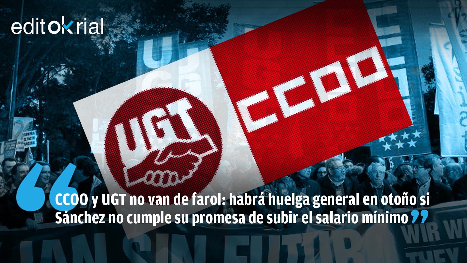 Si la amenaza de CCOO y UGT se hace realidad, Pedro Sánchez habrá completado el círculo: la amenaza de los dos principales sindicatos de convocar una huelga general no es un mero ejercicio retórico, porque a la negativa a acometer la reforma laboral o el retraso en la subida del Salario Mínimo Interprofesional se une la manifiesta incapacidad para frenar la galopante subida de la luz. Y es que por mucho que la afinidad ideológica de estos sindicatos con el Ejecutivo resulta evidente, los líderes de CCOO, Unai Sordo, y UGT, Pepe Álvarez, son conscientes de que la situación por la que atraviesan millones de trabajadores, por mucho escudo social que venda el Ejecutivo, no está para darle palmaditas en el hombro al Gobierno. Se juegan su credibilidad como sindicatos y están dispuestos a echarse a la calle si Pedro Sánchez no atiende a sus demandas.
