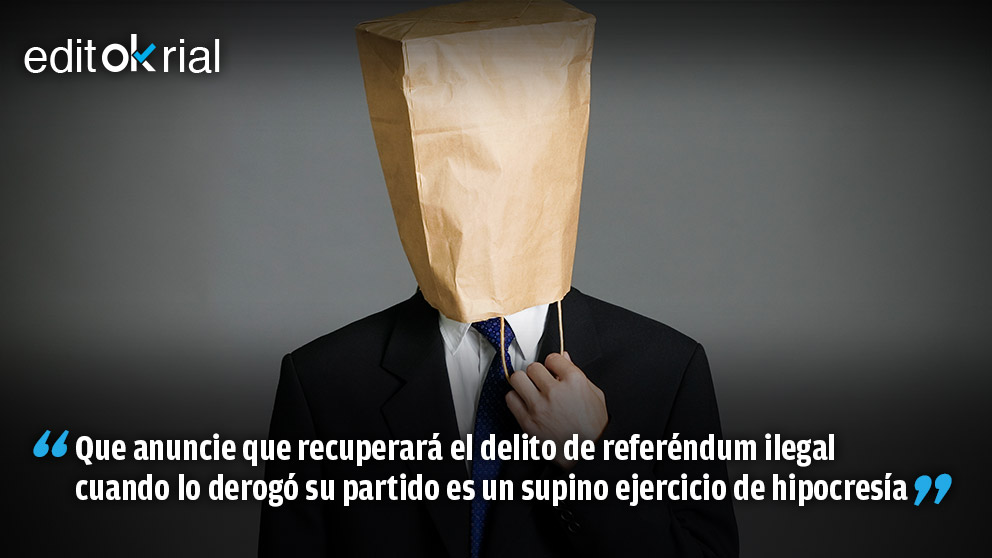 La respuesta a las cuestión planteada por Astarloa es clara. Nada. Solo ahora, cuando la ira independentista ha incendiado las calles de Cataluña y el separatismo insiste en su desafío al Estado de Derecho, el presidente del Gobierno en funciones anuncia en un debate electoral que volverá a recuperar el delito de referéndum ilegal. No cabe mayor hipocresía. Si tuviera vergüenza, lo que tendría que hacer el jefe del Ejecutivo es pedir perdón a los españoles por la tropelía que cometió su partido en 2005, al dejar al Estado de Derecho sin un instrumento fundamental de defensa. Sánchez es un oportunista que, según le conviene, se abraza a la bandera y al marco constitucional o tiende puentes al separatismo para asegurarse el poder. Su partido le hizo un daño de proporciones gigantescas a España y ahora Sánchez se presenta como el salvador de la patria. Es, sencillamente, un cínico.