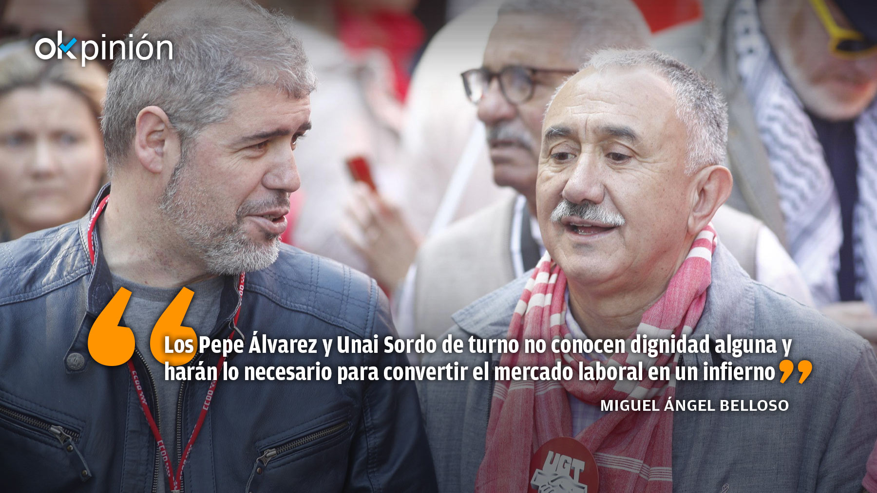 Ahora los Pepe Álvarez y Unai Sordo de turno no conocen dignidad alguna, están plegados a las órdenes que les llegan de Moncloa y harán lo que sea necesario para destruir el mayor número de empresas posibles y convertir el mercado laboral en un infierno “por el bien de la clase trabajadora” dañando lo más posible la reputación de las compañías, que son las que sostienen cada vez con más dificultades el tinglado. Si los sindicatos apostaran alguna vez por la productividad, si tan solo entendieran lo que significa, si estuvieran en favor de la libre concurrencia -que baja los precios y favorece la aparición de nuevos nichos de negocio- o ayudaran a la competitividad de las compañías en las que ejercen su representatividad, entonces uno podría entender que pujarán por alzas salariales, aunque sean inconvenientes.