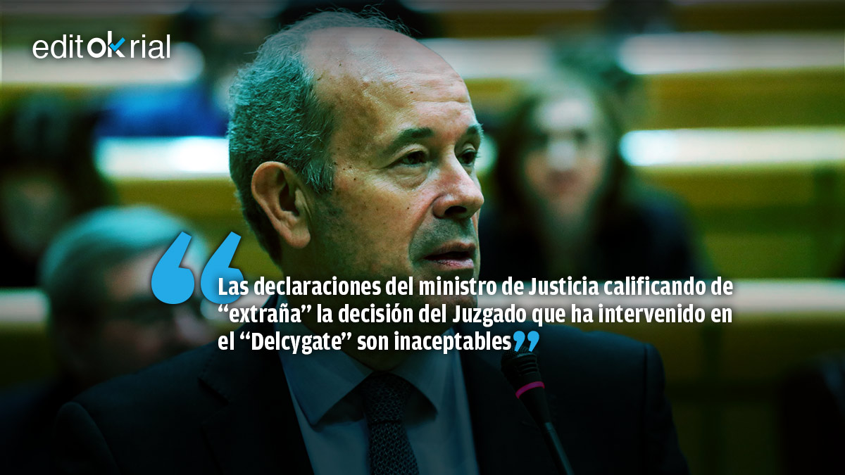 Si, como él mismo asegura, «tenemos un Estado de Derecho en el que cualquier ciudadano puede poner una denuncia y que esa denuncia sea observada», ¿qué hay de extraño en que un Juzgado haya exigido proteger las grabaciones de la cámara de seguridad de Barajas? En lugar de tirar la piedra y esconder la mano, Juan Carlos de Campo debería ser más explícito, porque lo que ha hecho es esparcir sombras de sospecha sobre una decisión judicial, algo muy grave viniendo del ministro de Justicia y, además, de un juez.