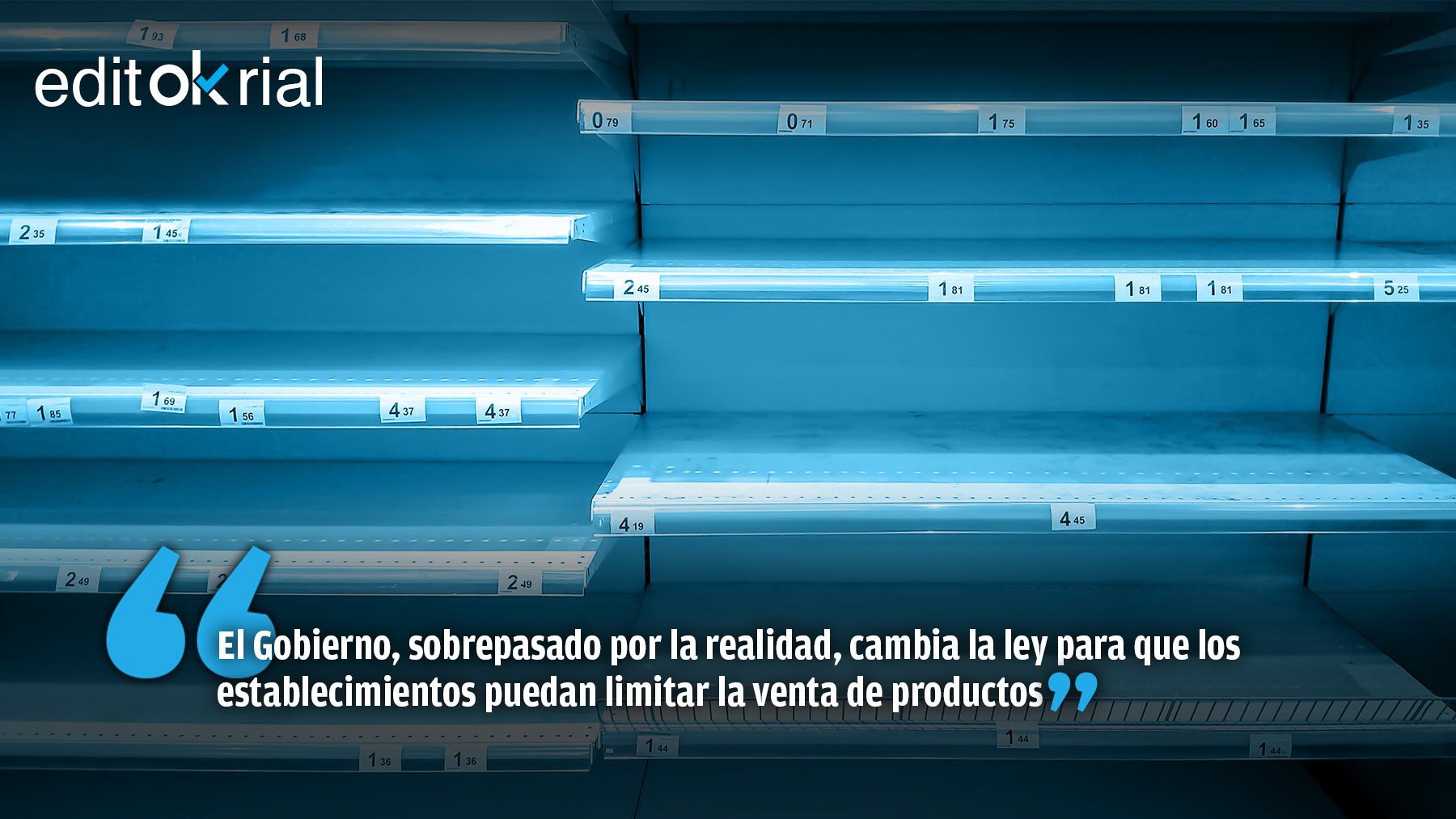 El Gobierno que iba a llevar a España a las cotas más altas de progreso, el que nos colocaría en la vanguardia del futuro, limita la venta de productos para evitar el desabastecimiento. El milagro económico de Sánchez era esto. Salvando las distancias, así empezó Nicolás Maduro y terminó con las cartillas de racionamiento. Hace una semana, no pasaba nada, estaba todo controlado, el Gobierno garantizaba el abastecimiento y España funcionaba con total normalidad, pese a los ligeros «desajustes» provocados por el paro de los transportistas. Hoy, el Ejecutivo, desbordado e incapaz de frenar la brutal escalada de precios, recurre a medidas excepcionales propias de situaciones de emergencia nacional. Blanco y en botella: la leche es sólo un síntoma deterioro de la incapacidad de un Gobierno superado por la realidad. A remolque siempre de los problemas, la «España feliz» que vendió Pedro Sánchez era un cuento.