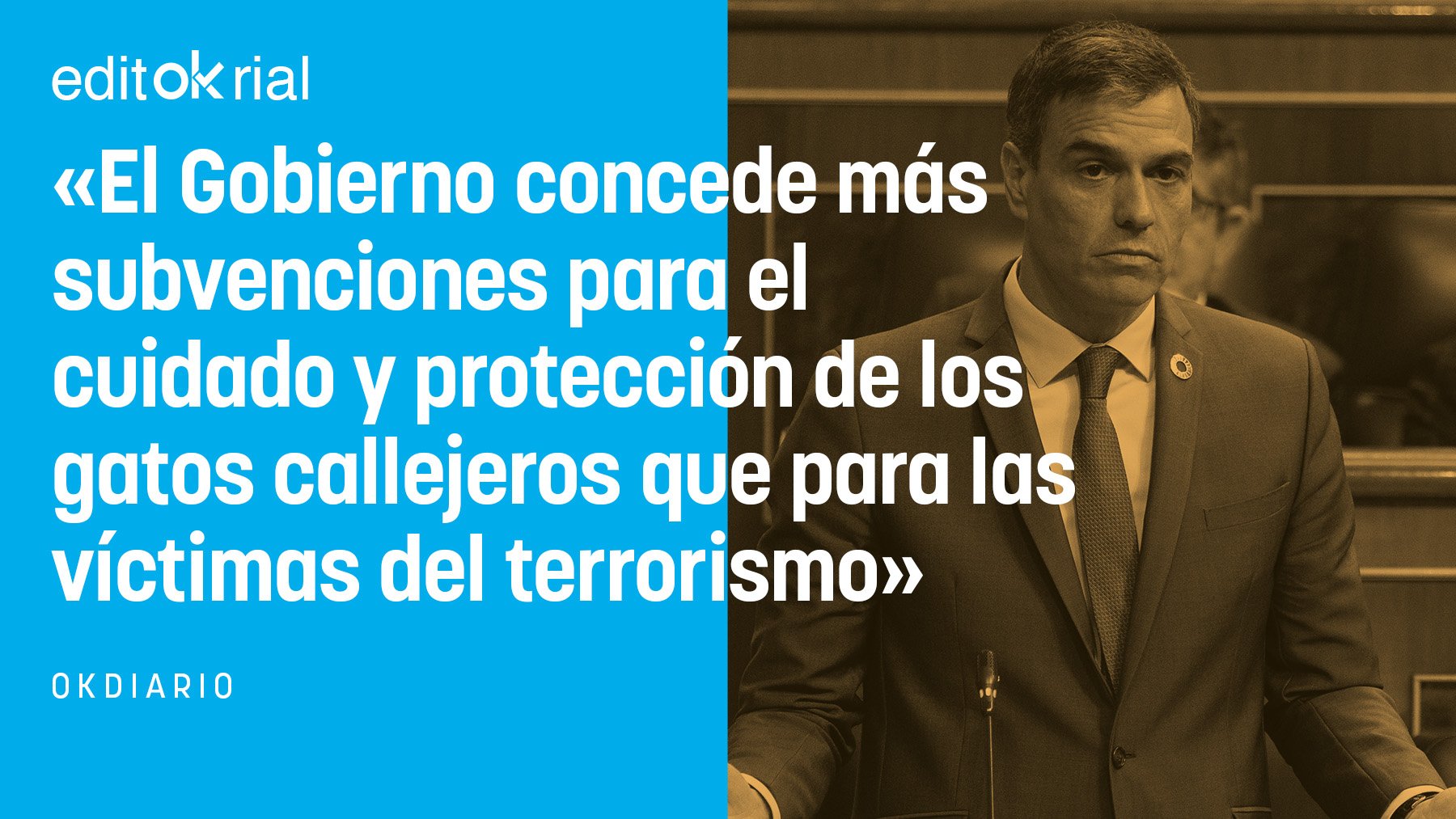 La convocatoria de ayudas a las víctimas de ETA, que se publicó tan sólo un día después, no pasa del millón trescientos mil euros y su objetivo es garantizar el funcionamiento de las entidades representativas de las víctimas del terrorismo, así como financiar sus programas de información y concienciación social contra el terrorismo y la preservación de su memoria y sufragar los de asistencia directa a las víctimas del terrorismo y sus familiares en sus necesidades sociales, laborales, psicológicas, sanitarias o jurídicas. Llegados a este punto, queda a consideración del lector medir el grado de ignominia de un Gobierno que entre ayudar a los gatos callejeros y ayudar a las víctimas del terrorismo no tiene duda: los gatos. La miseria moral de esta gente que nos gobierna es de bigotes.
