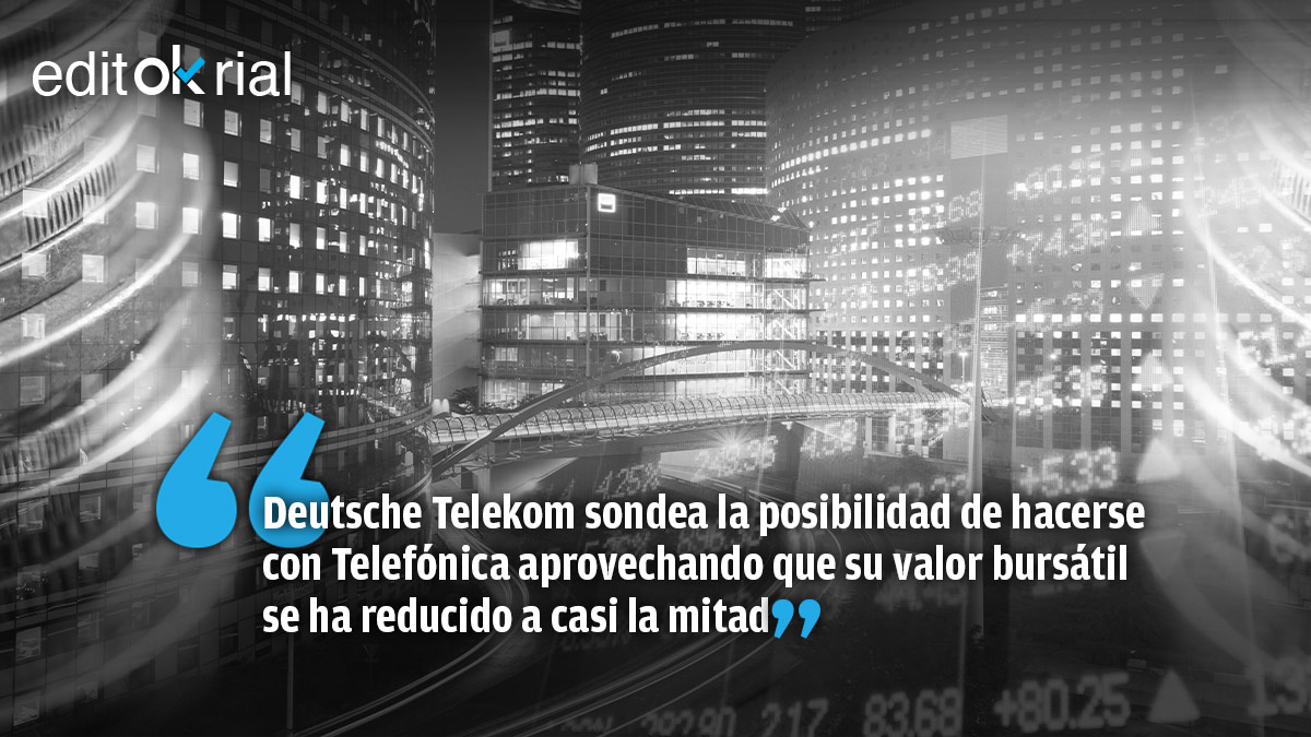 Deutsche Telekom sondea las posibilidades de adquirir Telefónica, la empresa estratégica española de telecomunicaciones, según ha podido saber OKDIARIO de fuentes conocedoras de la situación. La operadora alemana está llevando a cabo un análisis de oportunidades para hacerse con el gigante español, una de las mayores cotizadas de nuestro país que sufre un severo castigo bursátil. Telefónica cotizaba a 4,14 euros por acción y ahora lo hace a 2,87, lo que ha despertado el interés de Deutsche por hacerse con una compañía que cayendo casi a la mitad se ha convertido en el doble de atractiva para el gigante alemán.