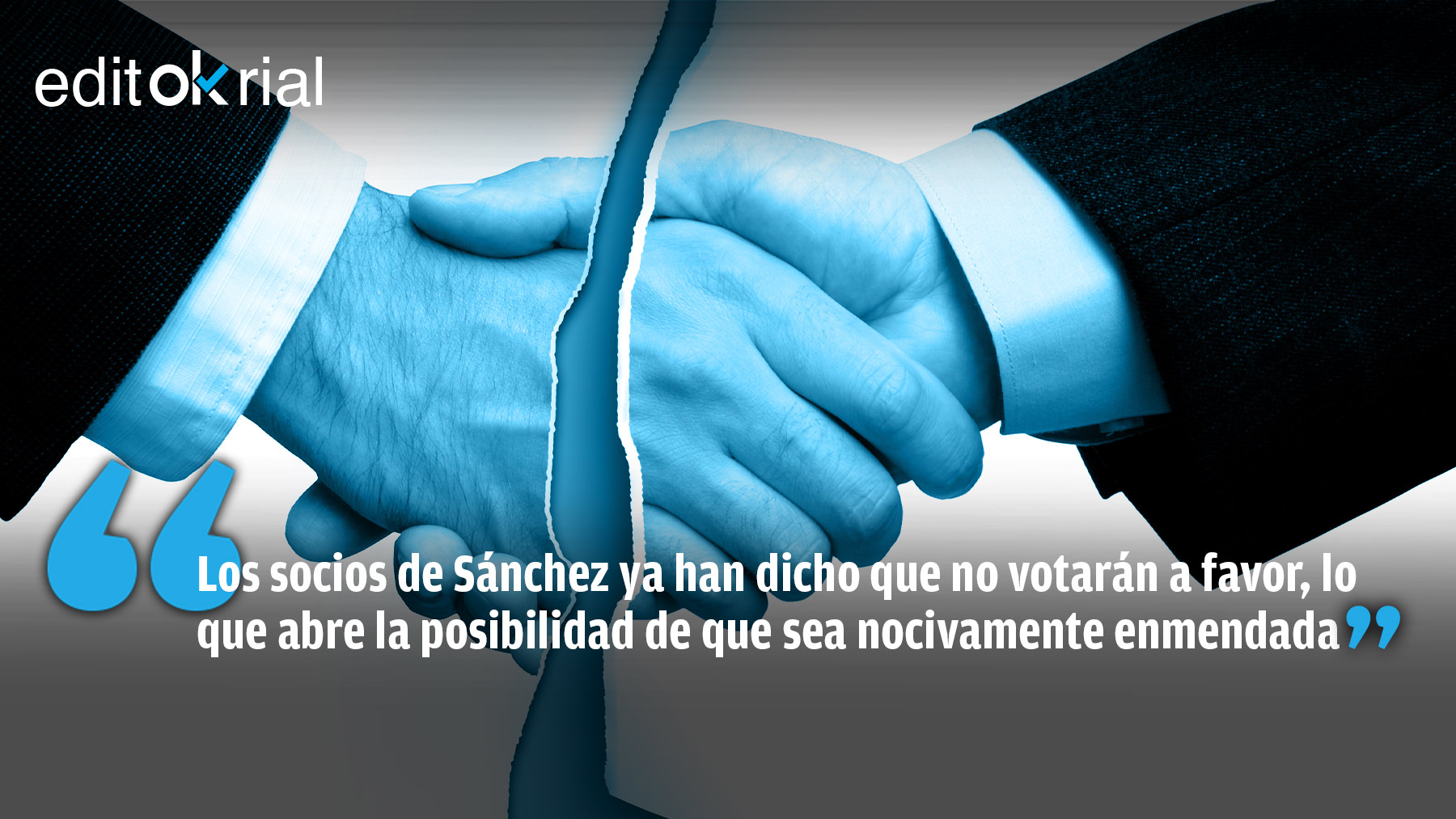 Si el decreto ley se quedara como está podría decirse que la meritoria labor de aliño del presidente de la CEOE habría dado resultados -salvar los muebles principales de la reforma laboral del PP a cambio de introducir matices que mantienen su estructura-, pero el problema es que la norma debe ser convalidada en el Congreso y los socios de Sánchez ya han dicho que no votarán a favor, lo que abre la posibilidad de que sea nocivamente enmendada si el decreto ley se convierte en proyecto de ley. En ese caso, Antonio Garamendi podrá ser señalado por algunos como culpable de meterse en el avispero socialcomunista, por mucho que haya dicho que si el Congreso «toca una coma» se descolgará del acuerdo. Y en ese caso habría que darle la razón al PP, que votará «no» por considerar que los cambios introducidos a la reforma laboral no la mejoran en ningún caso. En suma: dadas las circunstancias y habida cuenta de cómo se las gastan los aliados de Sánchez, para este viaje no hacían falta alforjas, sobre todo porque hay un riesgo real de que lo ahora pactado salte peligrosamente por los aires.
