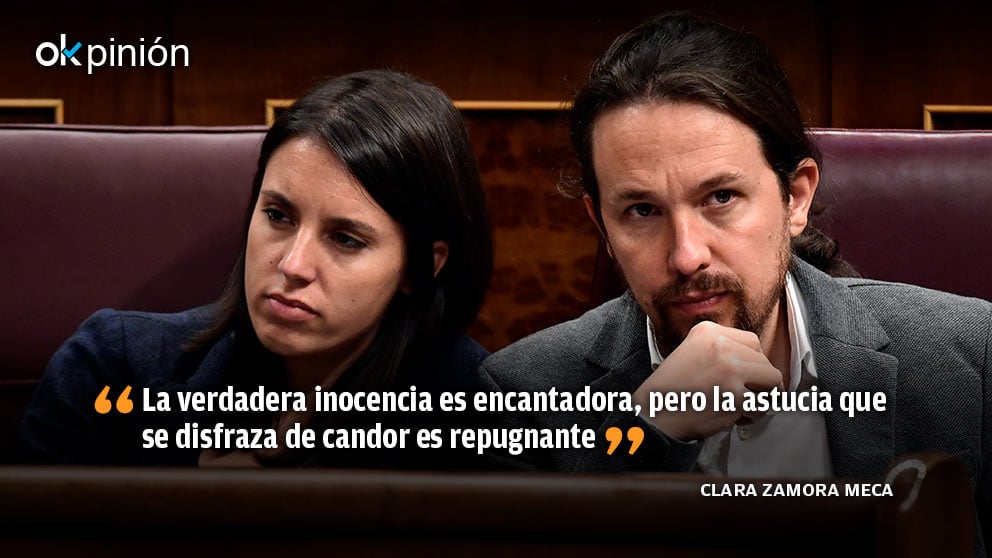 La verdadera inocencia es encantadora, pero la astucia que se disfraza de candor es repugnante. Ellos tienen cabezas privilegiadas, no cabe ninguna duda al respecto; es, quizás, lo único que se puede decir en positivo. Aquí deriva el gran peligro que suponen. El egoísmo de sus aspiraciones pasa por destrozar todo la anterior para que, en la nueva etapa que se inicia con su aparición en la historia de este país, su ascenso sea visto como una fina obra maestra. ¡No la apoyen diciéndoles lo que, en su fuero interno, ellos quieren escuchar! No sólo no les insultan, sino que les halagan.