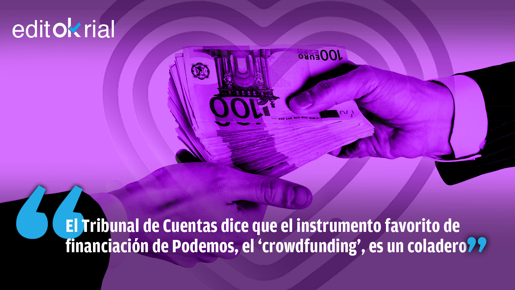 Hay que reconocer que el Tribunal de Cuentas ha estado de lo más educado cuando, en relación a las formas predilectas de financiación de Podemos, ha dicho que el ‘crowdfunding’ y los microcréditos «dificultan el control» fiscalizador de la legalidad de las aportaciones. Podía haber dicho que los ‘crowdfunding’ se prestan a a todo tipo de comportamientos delictivos, porque no hay manera de humana de determinar quién está detrás de las aportaciones que Podemos recibe en campaña electoral, pero el Tribunal de Cuentas se ha mostrado de lo más comedido en las formas.