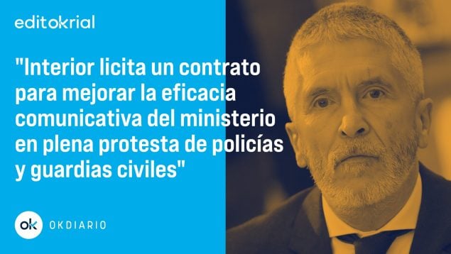 En vísperas de la anunciada movilización de Policía y Guardia Civil contra el ministro Fernando Grande-Marlaska por sus reticencias a la hora de regular la jubilación anticipada de los agentes, algo de lo que ya disfrutan los efectivos de las Policías autonómicas, el Ministerio de Interior ha decidido que la mejor manera de contrarrestar las protestas es gastar como si no hubiera mañana en mejorar la imagen del departamento. Le llaman a eso «mejorar la imagen comunicativa» —lo que de toda la vida ha sido propaganda pura y dura— y han tirado de recursos públicos para licitar un contrato para producción audiovisual, con «un valor estimado de 871.855,88 euros».