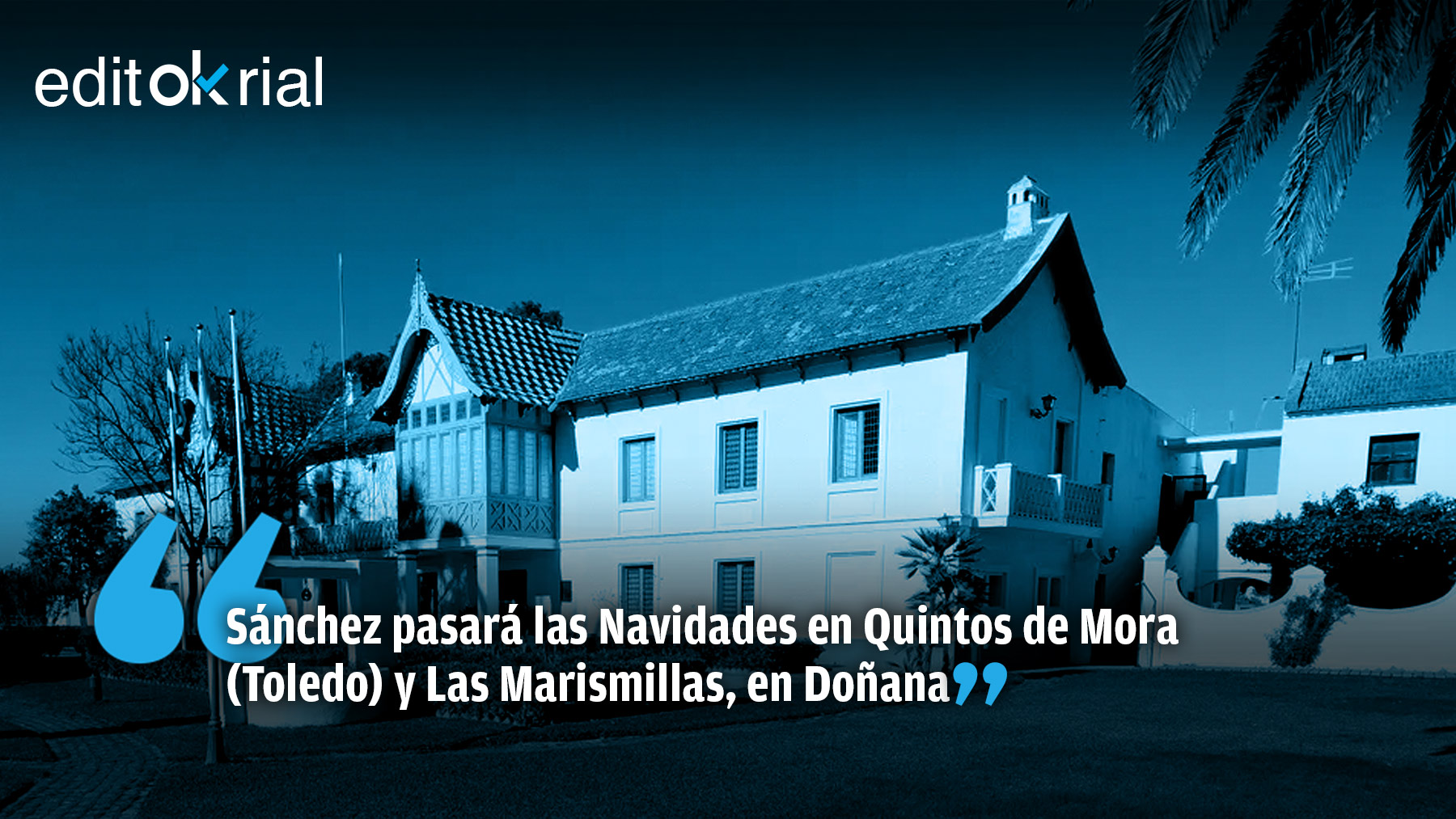 Quintos de Mora está situada en medio de la montaña, ocupando una superficie de 6.864 hectáreas. Un espacio donde poder respirar a pleno pulmón. No hay mejor lugar para contemplar cómo avanza la sexta ola que esta finca de Patrimonio Nacional, aislada de las tribulaciones de un país exhausto y harto. Y qué mejor complemento que Las Marismillas, en Doñana, para cuadrar el círculo de unas navidades de lujo. ¿Qué tendría que pasar para que Pedro Sánchez renunciara a entregarse a la molicie? ¿En cuánto tendría que situarse la incidencia de contagios por cada 100.000 habitantes para que el presidente del Gobierno se planteara no disfrutar de estos parajes naturales?
