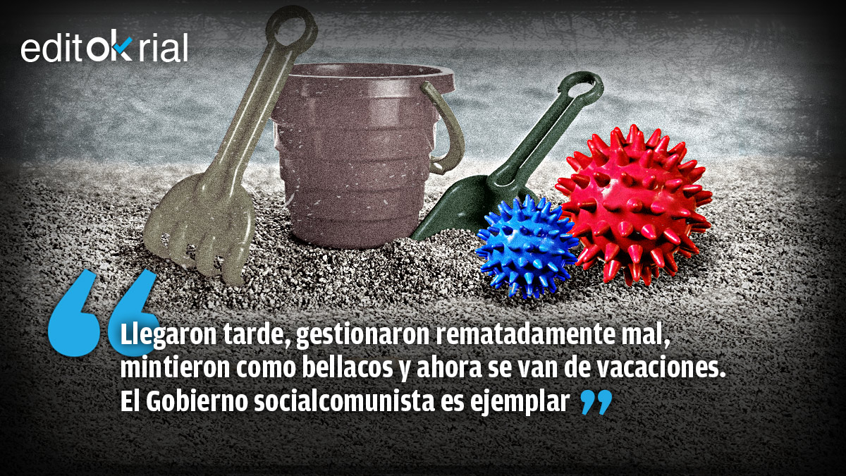 En plena escalada de contagios, Pedro Sánchez se va de vacaciones hasta el 25 de agosto. Poco parece importarle que los casos diagnosticados en los últimos 14 días asciendan a 33.579. La incidencia acumulada es de 71,40 casos por 100.000 habitantes, seis veces más que hace un mes, cuando el dato era de 12,24. Y, sin embargo, el jefe del Ejecutivo se dispone a coger tres semanas de descanso. Un mínimo sentido de la responsabilidad obligaría al presidente del Gobierno a adaptar su calendario estival a la situación de la pandemia, pero se conoce que en el orden de prioridades de Pedro Sánchez tomarse unos cuantos días de relax es más importante que la evolución del virus.