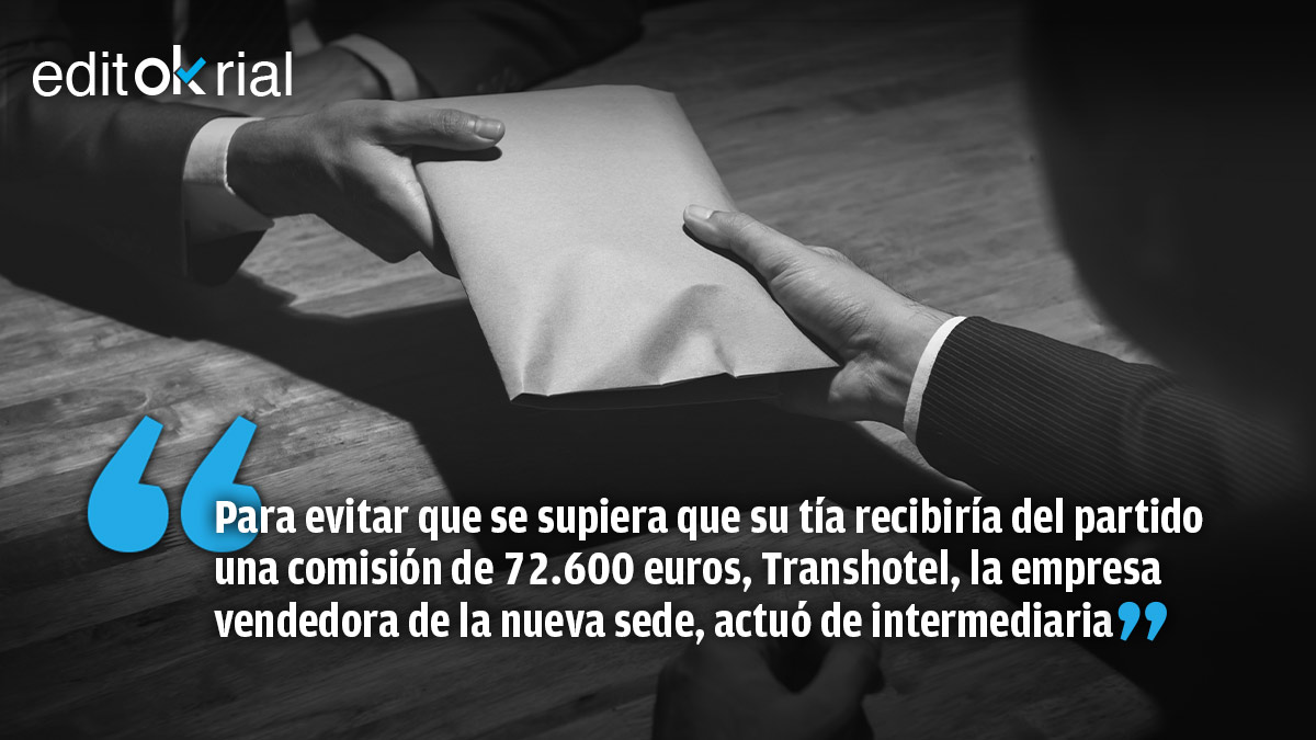 La maniobra urdida por Iglesias, a instancias del tesorero, Daniel Frutos, fue lograr que Transhotel abonase la comisión a la tía de Pablo Iglesias. En un documento se acordó que Podemos pagara a la entidad vendedora los 72.600 euros de la comisión y que Paloma Pérez-Marín Turrión emitiera después la correspondiente factura a Transhotel, para que fuera esta empresa quien formalmente abonara los 72.600 euros. O sea, Podemos paga a Transhotel y Transhotel paga a la tía del secretario general para no dejar rastro de la operación en el partido.