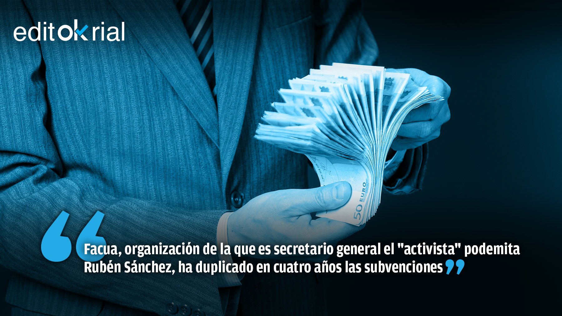 Facua, organización de consumidores cuyo secretario general es el podemita Rubén Sánchez – ese que dice ser un «activista por los derechos de los consumidores», ha encontrado un chollazo en el Ministerio de Consumo de Alberto Garzón, que desde que prometió su cargo en enero de 2020 le ha ido incrementando las subvenciones. Con dinero público (de todos los españoles), Facua se ha convertido en un instrumento al servicio del Gobierno. De bien nacidos es ser agradecidos. El año pasado percibió 723.010 euros, por los 564.926,4 del año anterior. La subida es más que notable, pese a que Facua ha ido perdiendo socios. En 2019, la cantidad fue de 432.616 euros y en 2018 de 382.888,8 euros. No hay que ser muy sagaz para concluir que la llegada de Pedro Sánchez al Gobierno se convirtió en todo un negocio para Facua, que con Podemos en el Ejecutivo ha ido creciendo a un ritmo que para sí lo quisieran quienes no tienen la fortuna de vivir de las mamandurrias del socialcomunismo. Es lo que tiene formar parte del régimen.