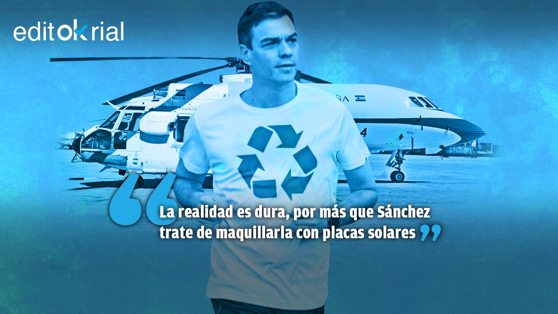 Si no fuera Pedro Sánchez, diríamos que las placas solares son una inversión necesaria acorde con las exigencias medioambientales que exige Europa. Pero es que el ecologismo del líder socialista es pura filfa como lo demuestran los 27 vuelos de Super Puma y Falcon que ha realizado desde que se quitó la corbata. Como ha explicado OKDIARIO, cada vez que Sánchez moviliza el Super Puma para desplazarse desde La Moncloa a la Base Aérea de Torrejón de Ardoz -una distancia de apenas 25,8 kilómetros- son precisos tres movimientos de esta aeronave, dos de ellos vacíos: desde el aeródromo de Cuatro Vientos -su base- hasta Moncloa, de ahí a Torrejón y, de nuevo, a Cuatro Vientos. La realidad es mucho menos verde y resiliente de lo que Sánchez nos quiere hacer creer, por más que trate de maquillarla con placas solares.