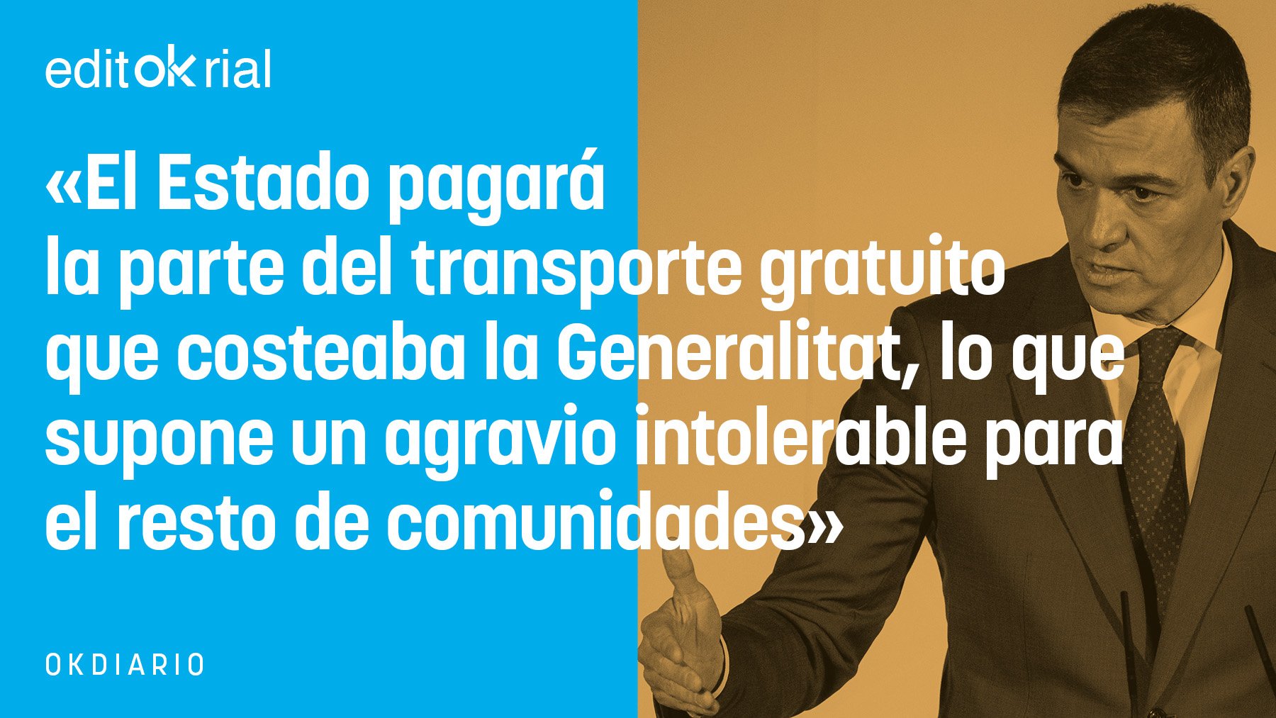 Otra cesión de Pedro Sánchez para salvar in extremis los decretos ley que provocaron el rechazo de Junts se traduce en que el Estado cubrirá la totalidad del coste de la gratuidad del transporte en Cataluña, mientras que el resto de comunidades tendrá que correr con al menos el 20% del coste de la medida. Resulta sencillamente insoportable que el Gobierno socialcomunista lamine ya no sólo la igualdad entre españoles con la Ley de Amnistía, sino que ahora establezca diferencias que afectan directamente a una materia tan básica como la igualdad entre territorios, lo que por extensión se traduce en que para Pedro Sánchez un madrileño o un asturiano (por elegir una comunidad donde gobierna el PP y otra donde gobierna el PSOE) valen menos que un ciudadano de Cataluña.