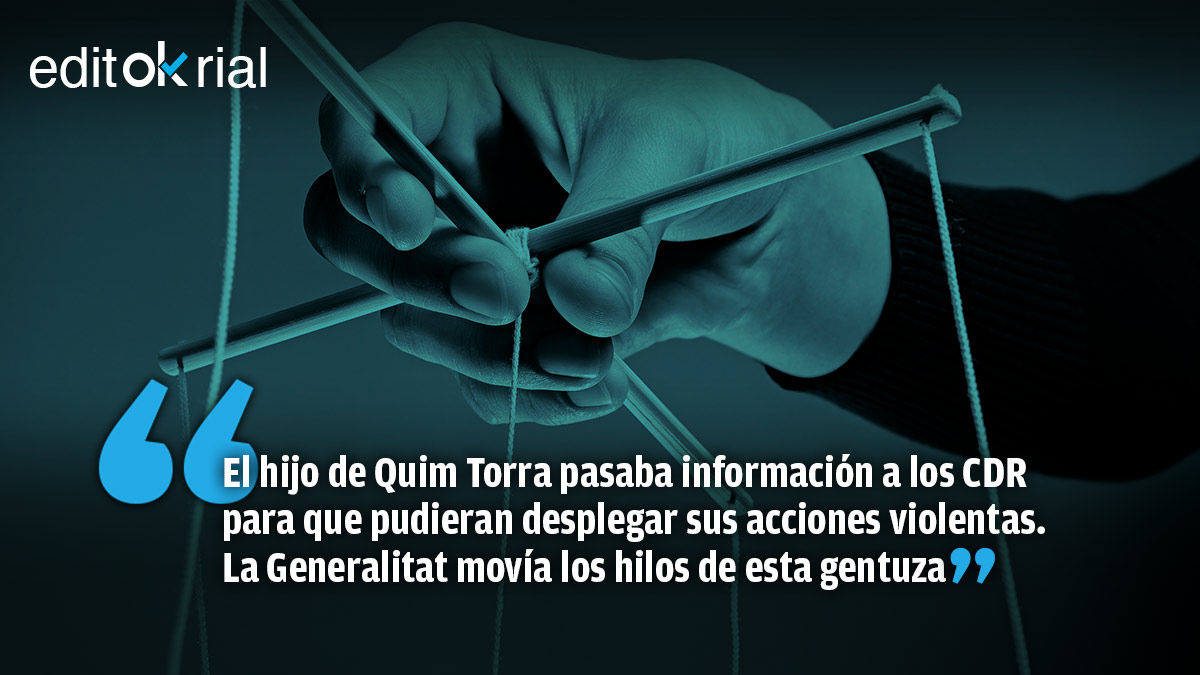 Los partidos independentistas se rodearon de su particular «ejército»: grupos de vándalos que bajo el nombre de Comité de Defensa de la República (CDR) se convirtieron en el brazo armado de los golpistas, que los utilizaban a discreción. Guillem Torra, el hijo del ex presidente de la Generalitat Quim Torra, colaboró activamente con los CDR detenidos en 2019 con material para la fabricación de explosivos. Una conversación interceptada por la Guardia Civil revela cómo miembros del autodenominado ERT (Equipo de Respuesta Táctica) hacen alusión al hijo de Torra y destacan lo mucho que se implicó a la hora de pasar información sobre el cerco al Consejo de Ministros de Pedro Sánchez celebrado en Barcelona el 21 de diciembre de 2018. ¿De dónde salía la información que pasaba el hijo de Torra? No hay que ser un lince para saber la respuesta.