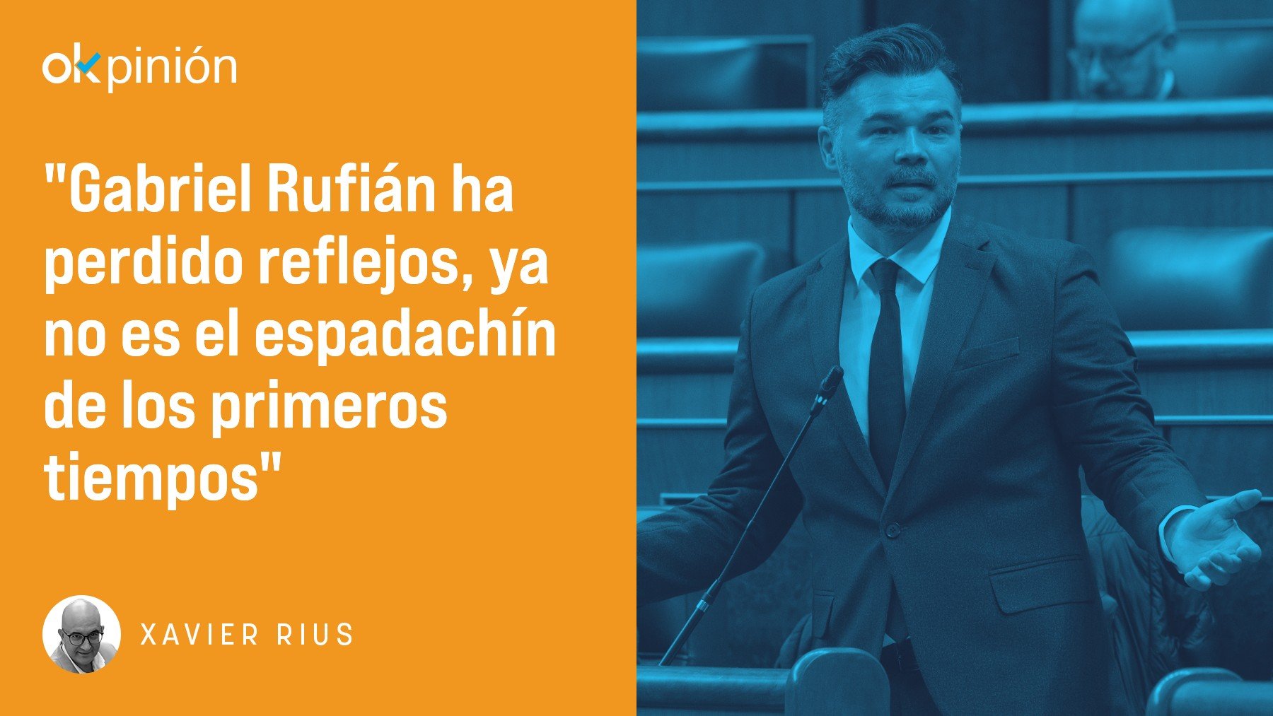 Sin embargo, lo mejor estaba por venir: Gabriel Rufián. Ya no es el espadachín de los primeros tiempos, si nunca lo fue. Cuando montaba numeritos y mostraba, en el pleno del Congreso, esposas e incluso impresoras.