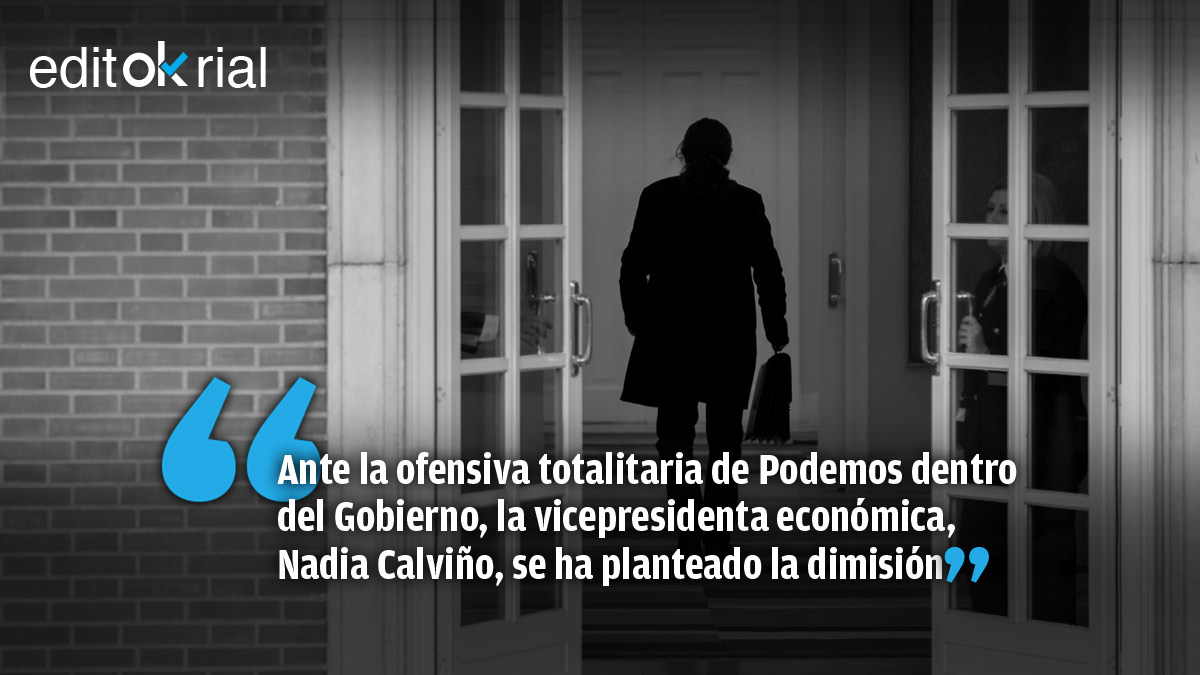 Lo cierto es que Podemos ha colocado en la diana a la vicepresidenta, profesional que desde posiciones socialdemócratas ha venido manteniendo criterios ceñidos a la sensatez y la ortodoxia pata tratar de hacer frente a la crisis económica. Para Podemos, minar el posicionamiento de Calviño es esencial para su estrategia de intervencionismo extremo y no va a parar en su intento de desgastarla aprovechando la actual coyuntura. El problema es que la debilidad de Pedro Sánchez y sus infinitas ansias de poder no le permiten dar un golpe de autoridad y frenar la embestida totalitaria de la formación de Pablo Iglesias. Hay un riesgo real de deriva comunista.