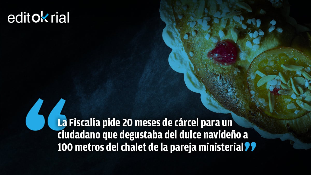 Se conoce que comerse un roscón de Reyes frente al casoplón republicano de Pablo Iglesias e Irene Montero es un delito agravado de desobediencia a la autoridad, razón por la que la Fiscalía de Dolores Delgado -¿de quién depende la Fiscalía? Del Gobierno. Pues eso- ha solicitado 20 meses de cárcel para Francisco Zugasti, el ciudadano detenido el pasado miércoles cuando se encontraba con un grupo de amigos, comiendo roscón de Reyes, a 100 metros del chalet de la pareja ministerial. Zugasti ha entrado en el Juzgado con la condición de investigado y ha salido con la de procesado, después de que la magistrada decidiera mandar al banquillo de los acusados a este vecino de Galapagar.