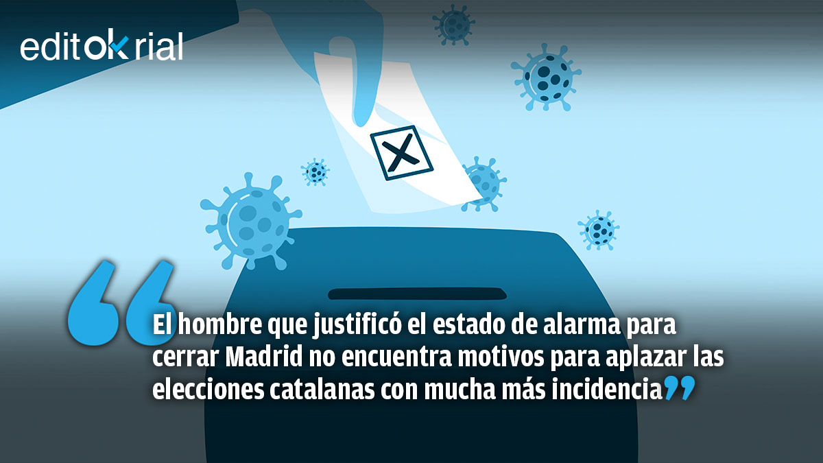 Lo de Salvador Illa, ministro de Sanidad y candidato del PSC a las elecciones catalanas, es sencillamente indecente. El responsable de velar por la salud de todos los españoles, el hombre que justificó el estado de alarma para cerrar Madrid cuando la comunidad tenía cerca de 500 casos de coronavirus por cada 100.000 habitantes, allá por los comienzos del mes de octubre, con el argumento de que “la obligación de este Gobierno, y de cualquier Gobierno con alma, es frenar el virus”, no encuentra motivos para aplazar las elecciones catalanas del próximo 14-F. Y lo dice cuando Cataluña presenta los peores indicadores epidemiológicos del virus de los últimos meses, con todas sus provincias en riesgo extremo y una incidencia bastante superior a los 500 casos por cada 100.0000 habitantes.