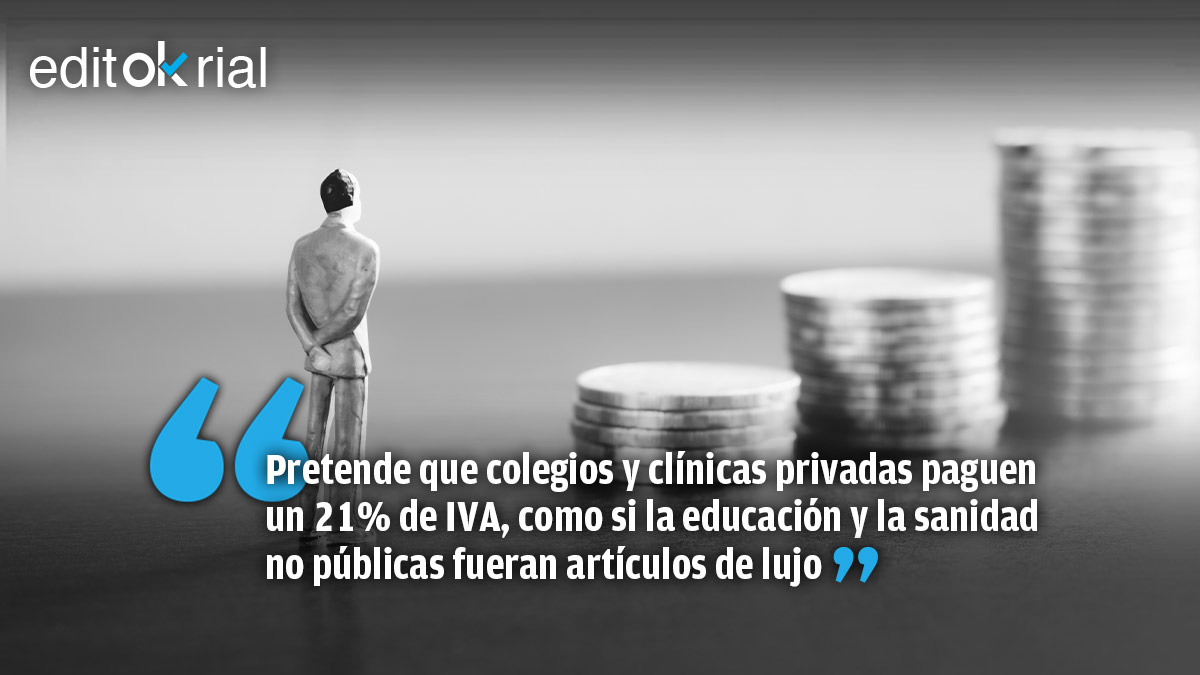 Con la que está cayendo, el golpe al sector educativo y sanitarios privados sería brutal, tanto como el que sufrirían los centenares de miles de españoles que llevan a sus hijos a colegios privados o hacen uso de la sanidad privada sin que por ello dejen de pagar sus impuestos.
