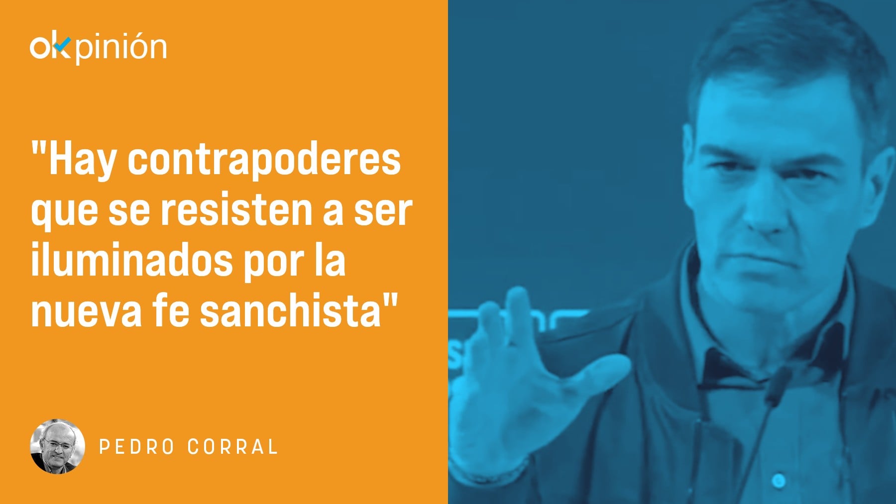 Hay, sin embargo, contrapoderes que se resisten a ser iluminados por la nueva fe sanchista, de ahí que el siguiente paso sea el de la colonización de las conciencias mediante la inoculación de una nueva doctrina sagrada, en la que Sánchez aparece como el juez infalible que sentencia sobre el amor y el odio, el bien y el mal, la paz y la guerra, la justicia y la arbitrariedad… pero como si nada de lo negativo fuera con él.