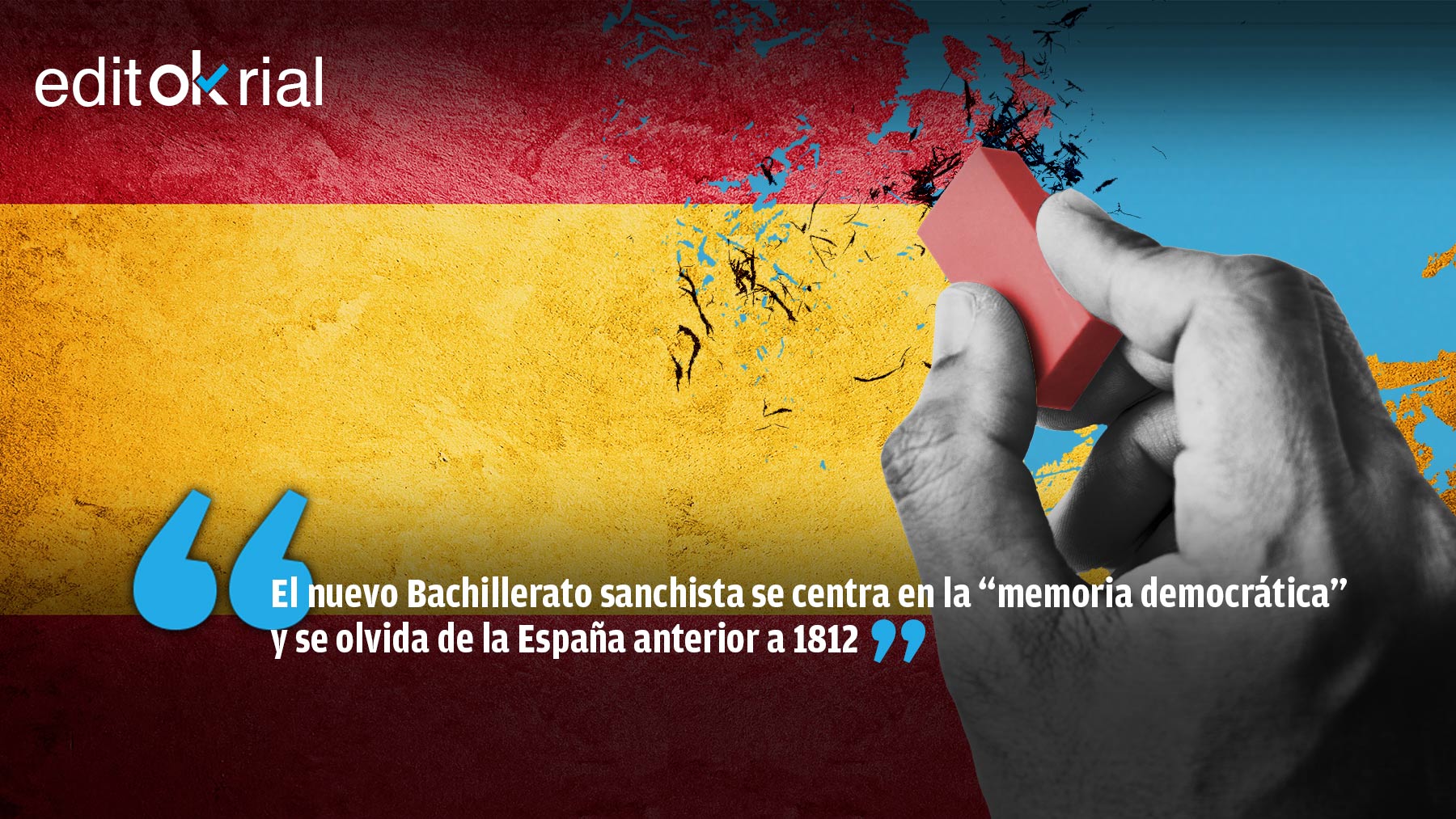 Lo que ha aprobado el Consejo de Ministros -el Real Decreto por el que se establece la ordenación y las enseñanzas mínimas de Bachillerato- es una de esas aberraciones que pagarán en el futuro millones de jóvenes españoles. Ya no sólo es que se desincentive el esfuerzo -podrá pasarse de curso suspendiendo-, sino que se limitará el estudio de la Historia de España a partir de 1812. Es decir, se borra de un plumazo buena parte de la historia nacional para centrarse en la «memoria democrática», bandera del Gobierno socialcomunista que pasa a tener un enorme peso académico al ser considerada como uno de los «saberes básicos» de la asignatura de Historia.
