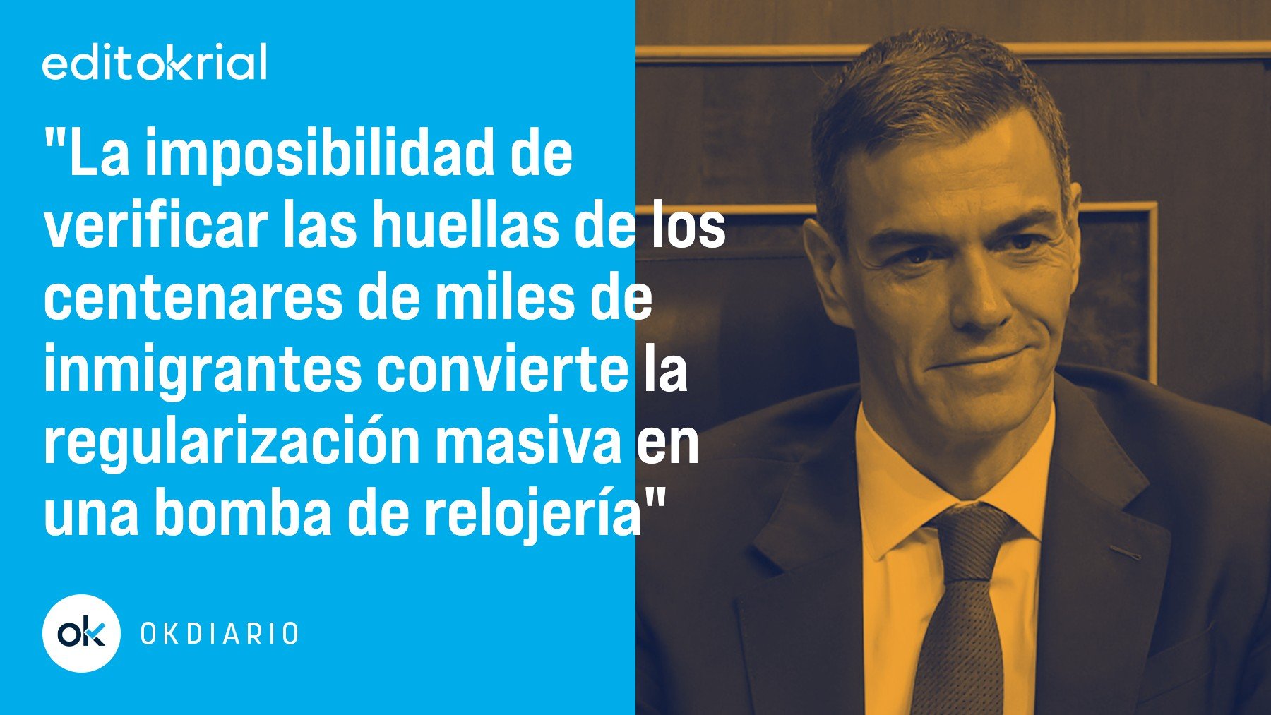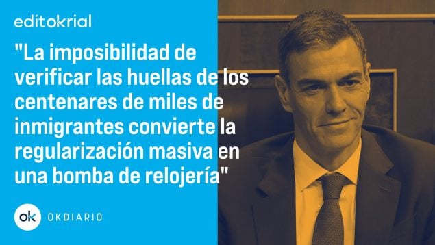 No hay que ser muy sagaz para concluir que lo que va a ocurrir es que el Gobierno permitirá a los inmigrantes regularizarse sin verificar sus huellas, lo que evidentemente potencia hasta el infinito los riesgos en materia de seguridad. Será, pues, un coladero y una bomba de relojería social, porque el Estado, por iniciativa del Gobierno, habrá abdicado de su obligación de velar por la protección de los ciudadanos. No lo dice OKDIARIO, sino los propios policías que advierten del peligro que se nos viene encima. Porque entre un millón de inmigrantes irregulares es fácil adivinar que habrá una proporción de personas, por muy pequeña que sea, que serán una amenaza y un peligro. Toda una ruleta rusa.