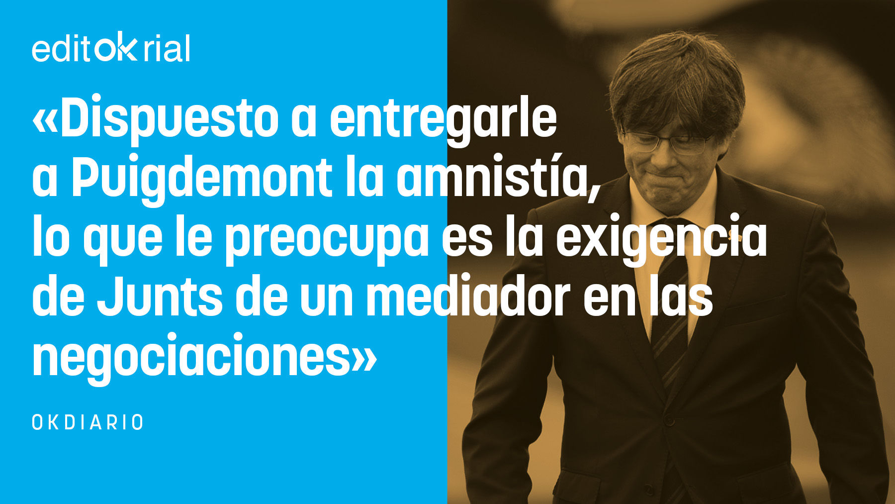 Resulta verdaderamente intolerable que lo que en estas horas preocupe más a Pedro Sánchez sea la exigencia de Carles Puigdemont de crear la figura de un mediador o relator en las negociaciones que se llevarían a cabo después de aprobarse la ley de amnistía que el prófugo de la justicia reclama como paso previo. Es una indecencia que Sánchez, dispuesto a triturar el régimen del 78, pretenda convencer ahora a Puigdemont de que renuncie a la figura del mediador para «no dejar actas de las negociaciones». Por supuesto que la figura de un relator es una ignominia, pero lo que supone la claudicación del Estado ante un grupo de golpistas es la amnistía que Pedro Sánchez está dispuesto a concederles. Y lo que venga después, con mediador o sin mediador de por medio, no sería otra cosa que la constatación de que Pedro Sánchez habría traspasado todas las líneas rojas y entregado a los sediciosos la dignidad del Estado para tratar de ganarse sus siete votos.