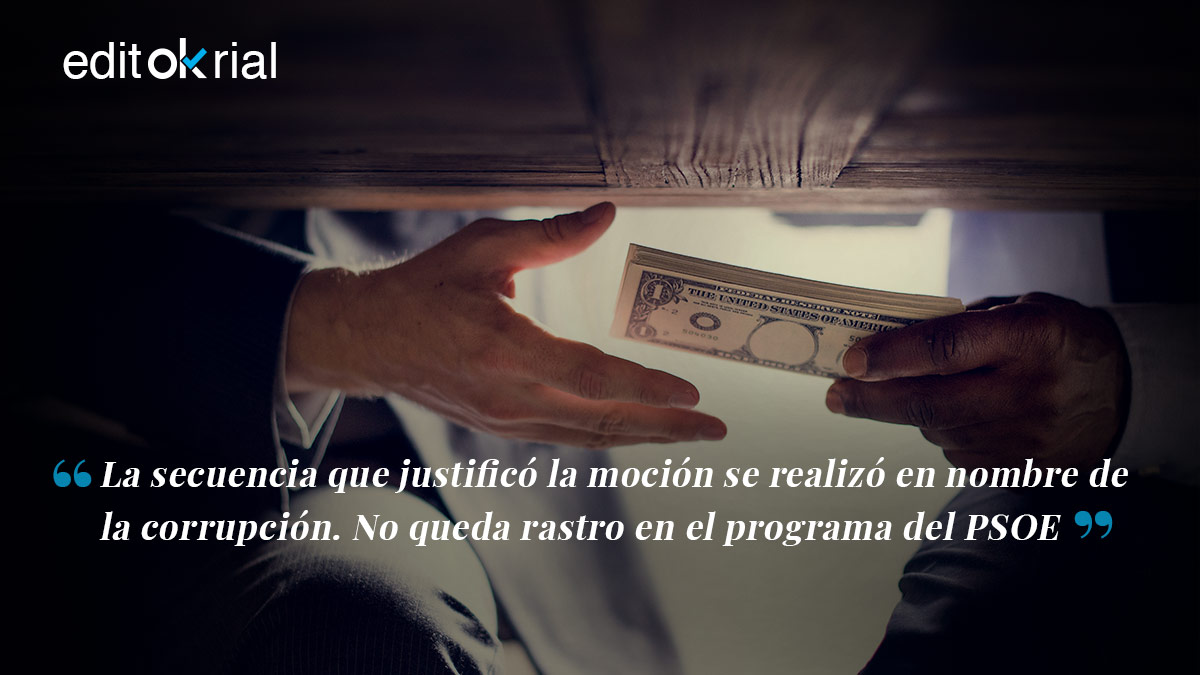 Toda la secuencia que justificó la moción de censura se realizó en nombre de la corrupción. Un noble motivo, especialmente cuando su promotor pertenece a un partido, el PSOE, que ha protagonizado algunos de los casos de corrupción más notorios de nuestra democracia reciente. Abanderar una causa así implicaba por parte de los socialistas un serio propósito de enmienda, que sin duda celebramos. Pero de esta lucha no queda rastro en el programa que el presidente Sánchez acaba de presentar, salvo en dos medidas de aparente menor calado: una nueva Ley Integral de Protección de Testigos, Informadores y Denunciantes y la eliminación del artículo 324 de la Ley de Enjuiciamiento Criminal. Estas propuestas permitirían iniciar acusaciones con mayor facilidad –con mayor opacidad también– y suprimir los plazos máximos de las instrucciones; en la práctica, las causas pueden alargarse sin fin. Dos medidas que, en manos de un Gobierno arbitrario, le otorgarían un enorme poder discrecional sobre la sociedad civil.