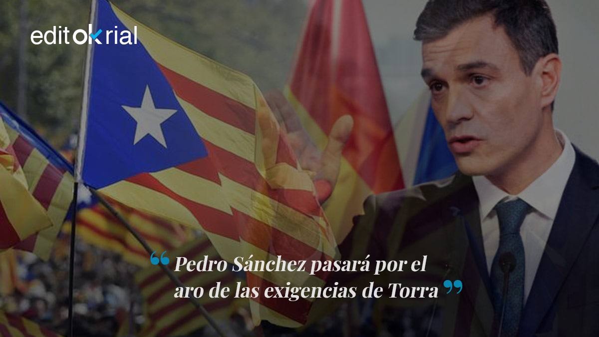 Pedro Sánchez está dispuesto a entregar buena parte de la dignidad y de los recursos de España a Quim Torra si con ello se asegura la Presidencia hasta las elecciones generales de 2020. El dirigente socialista sigue haciendo de la irresponsabilidad su modo de gestión. Con tal de permanecer un par de años en La Moncloa, dará oxígeno en forma de dinero y reconocimiento político a las aspiraciones veleidosas del golpismo catalán. Quim Torra se ha presentado en Madrid este lunes con las ideas claras y el lazo amarillo que simboliza el golpe contra España colgado de la chaqueta y de las palabras: «No renuncio a ninguna fórmula para alcanzar la autodeterminación». Eso significa una petición a España de 17.000 millones de euros en los próximos dos años. Lo peor es que, en una acto de absoluta piromanía política, Pedro Sánchez estaría dispuesto a pactar con ellos una reforma de la Constitución.