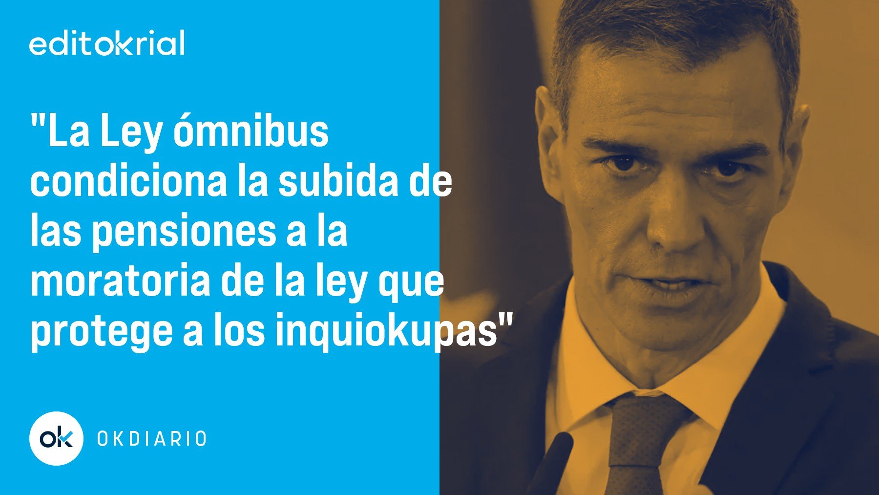 El Gobierno lo ha vuelto a hacer: el próximo martes 27 se votará en el Congreso de los Diputados el denominado decreto ómnibus, un cajón de sastre en el que, bajo la excusa de que son todas medidas sociales, se tendrá que aprobar la subida de las pensiones vinculada, sí o sí, a la moratoria de la ley antidesahucios, una norma que ha servido para que los inquiokupas hagan su agosto todo el año al dejar de pagar el alquiler sin consecuencia alguna. O sea, que el Ejecutivo vuelve a practicar el chantaje, la pura extorsión, de modo que para que los pensionistas vean revalorizadas sus pensiones habrá que pasar por el aro y aceptar que los inquiokupas vivan gratis total, sin abonar un euro, bajo la excusa de la vulnerabilidad social. Y es que un inquilino puede dejar de pagar el alquiler si sus ingresos no superan los 1.800 euros al mes o si debe destinar el 30% de sus ingresos totales al pago de la renta y suministros, como agua, luz, gas o teléfono. La norma fue aprobada durante la pandemia, pero seis años después sigue en vigor, provocando un calvario para miles de propietarios a los que se les debe el alquiler de meses o años.