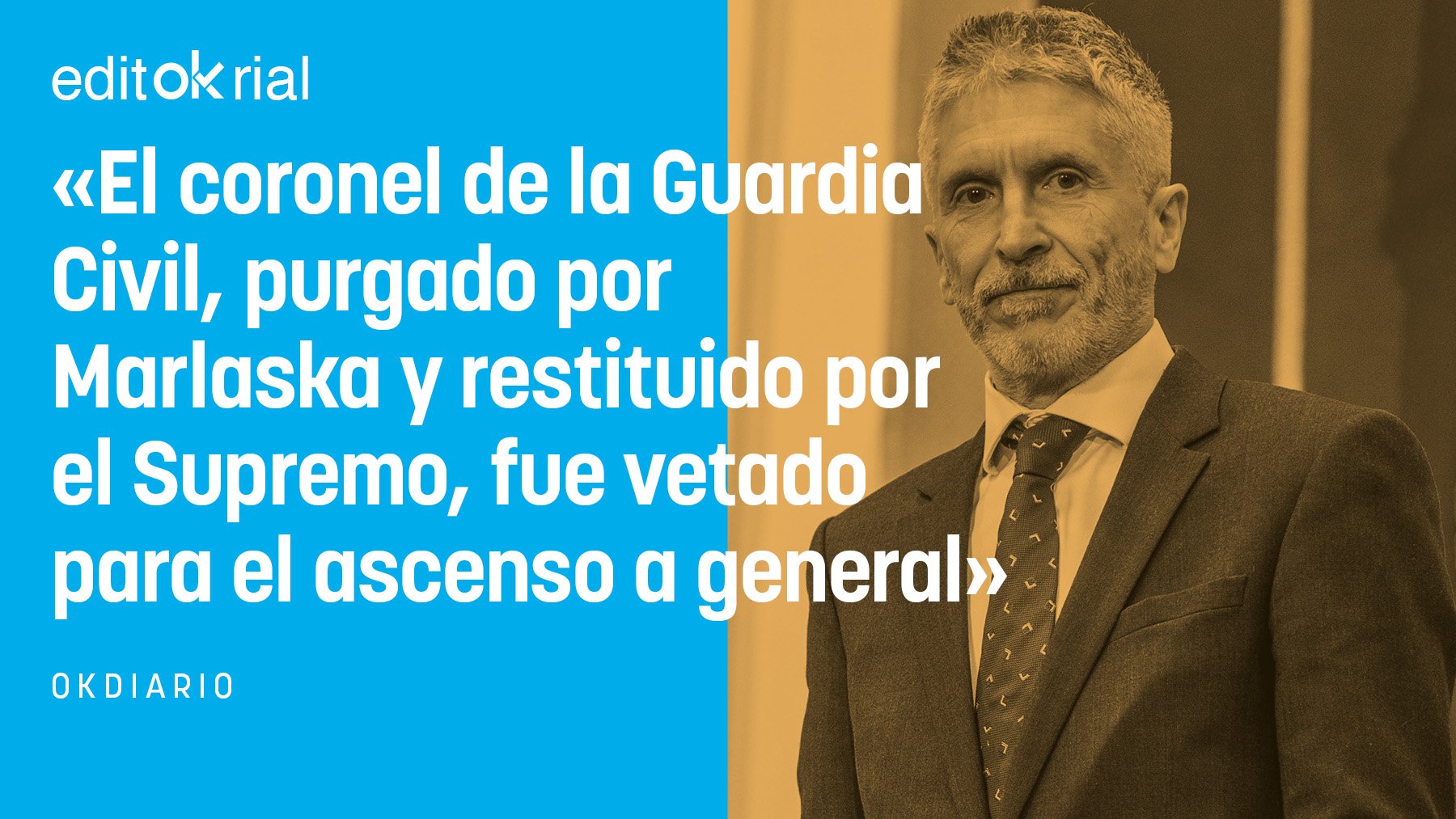 Después de que el ministro de Interior, Fernando Grande-Marlaska haya quedado retratado como un auténtico cobarde por el Tribunal Supremo, que ha anulado la destitución del coronel Diego Pérez de los Cobos al frente de la Comandancia de la Guardia Civil de Madrid, Marlaska no sólo tiene que restituirle en el cargo, como ordena la sentencia, sino que no puede impedir, si le queda un atisbo de decencia, que el militar sea ascendido a general de Brigada. La purga de Marlaska tuvo consecuencias: Pérez de los Cobos fue injustamente privado de su ascenso al generalato, pese a que contaba con la mejor puntuación. Pese a ser año tras año uno de los coroneles mejor puntuados en las evaluaciones del Consejo Superior de la Guardia Civil, su nombre nunca figuraba entre los señalados por el ministro. Ahora, De los Cobos tiene derecho a que le sean reconocidos tres años de servicio al frente de un puesto de tanta relevancia como la Comandancia de Madrid, que otorga mayor puntuación para el ascenso que la que recibía en su actual destino. Y este mismo año habrá cuatro puestos que cubrir.